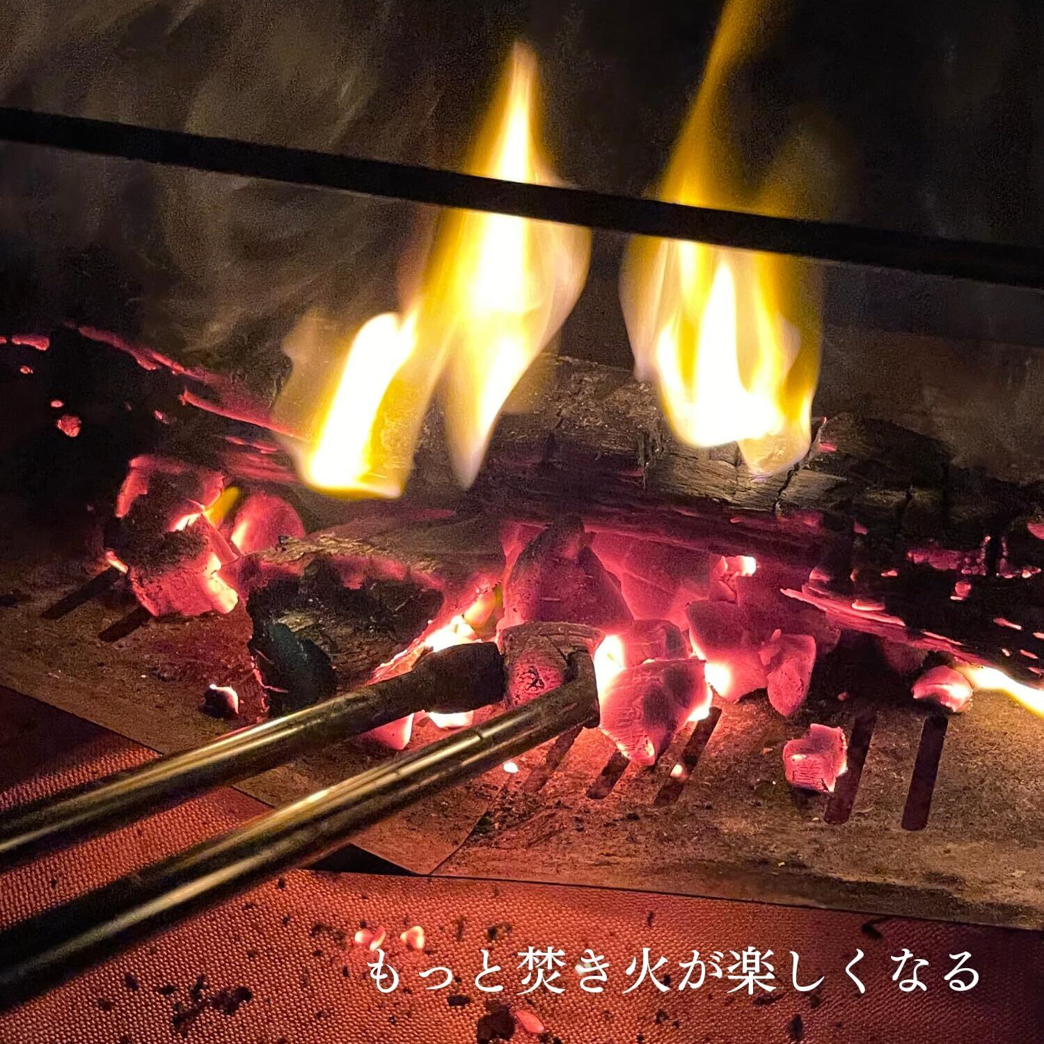 火バサミの先端が平らな構造のため小さな枝から大きい薪までとても簡単に掴める。キャンプ、焚き火、BBQなどのアウトドアで大活躍!