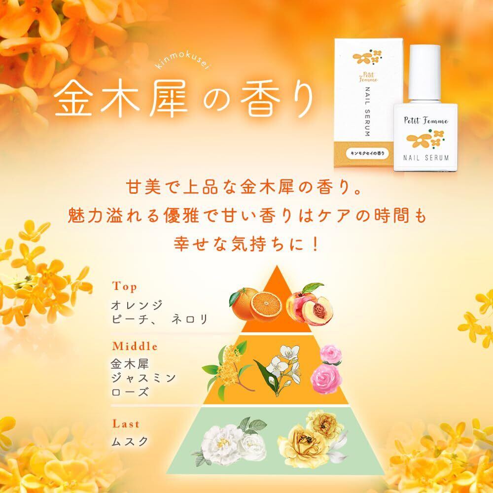 Petit Femme 金木犀 ネイルオイル 10ml キューティクルオイル 金木犀の香り ネイルケア 爪 ケア 保湿 甘皮ケアオイル ネイルケアオイル 爪 オイル 7 の 無添加 シアバター スクワラン 爪 美容液 キンモクセイ