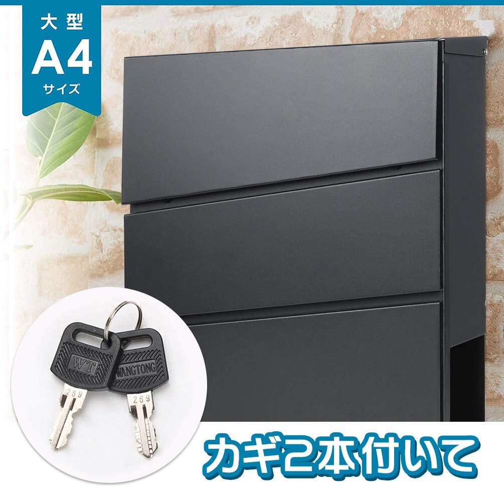 Jssmst(ジェスマット) メールボックス 郵便受け ポスト 大型 郵便ポスト ファミリーポスト キーロック式 新聞受け ブラック 35*33*10cm(932-Black)