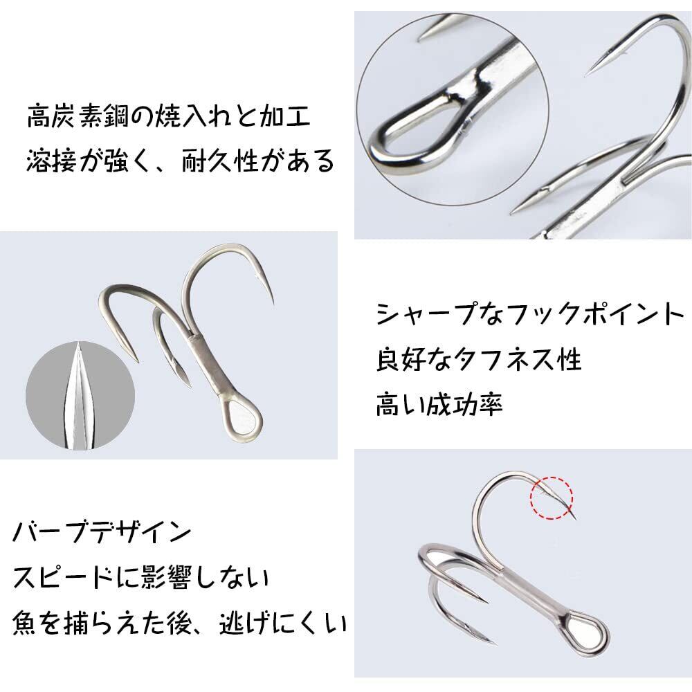 トリプルフック トレブルフック 釣りフック 高炭素鋼フック 釣り針 トレブルルアー 釣ルアー交換釣り針 高耐食性(2# 4# 6# 8# 10#セット)