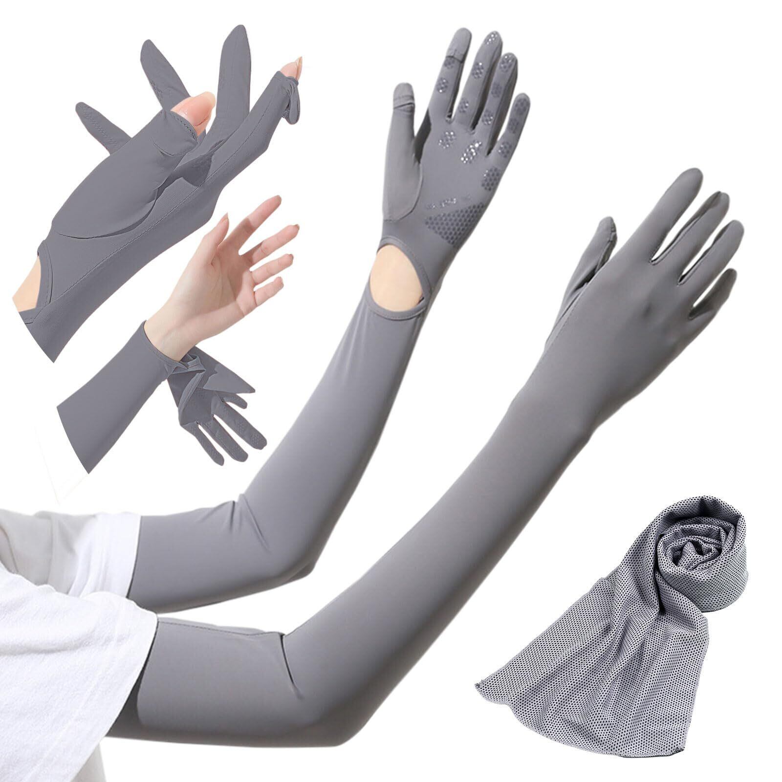 [fortulux] アームカバー レディース 【冷感スカーフ付き】 UVカット ロング 指先までフルカバー フリップ仕様 日焼け止め UPF50+