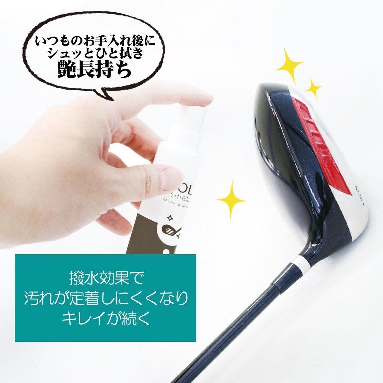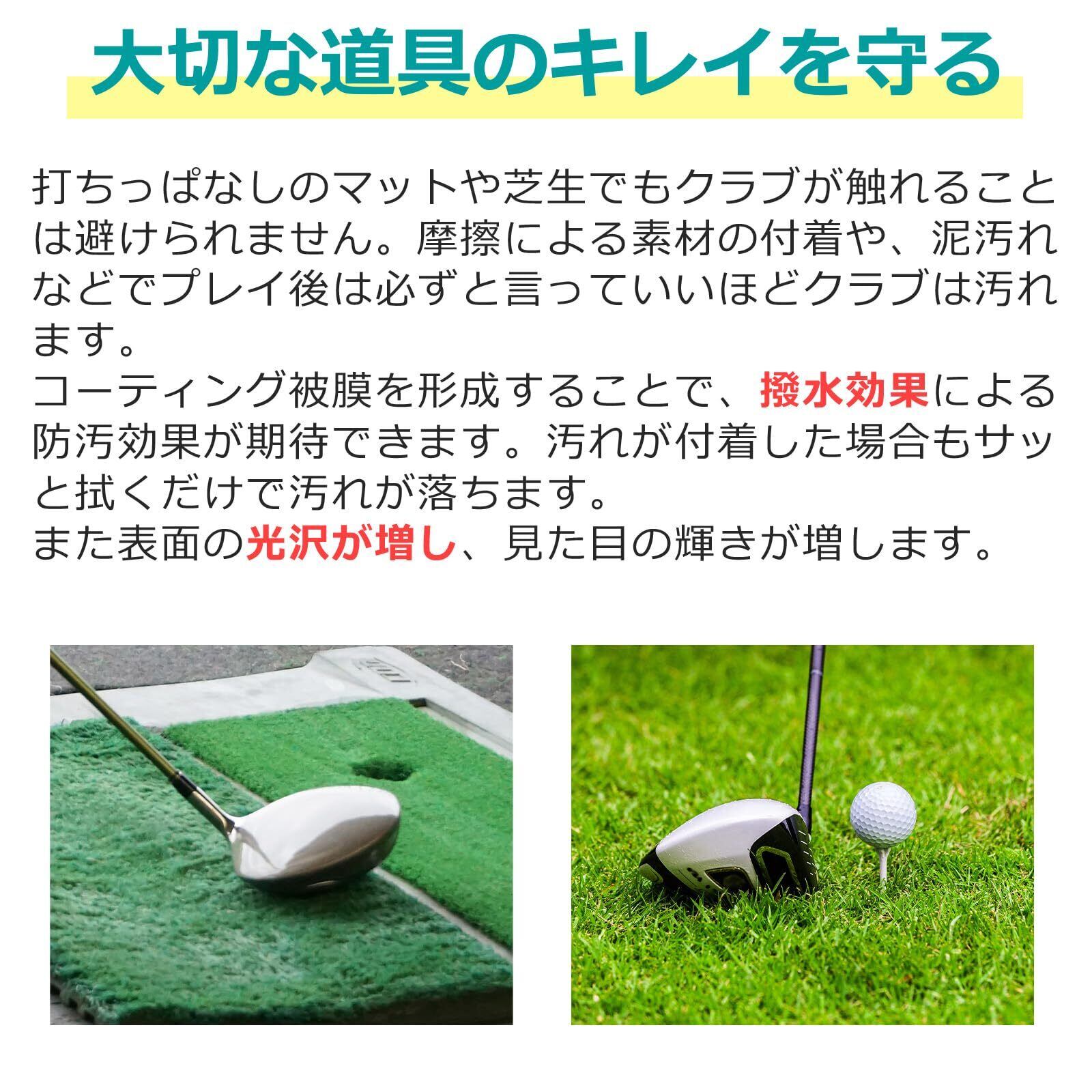 【撥水×防汚×艶出しが1本で】ゴルフクラブの光沢を復元し、雨・湿気・紫外線から守る撥水コーティングを形成。表面に皮膜が残ることで、手垢・水垢も防止できます。