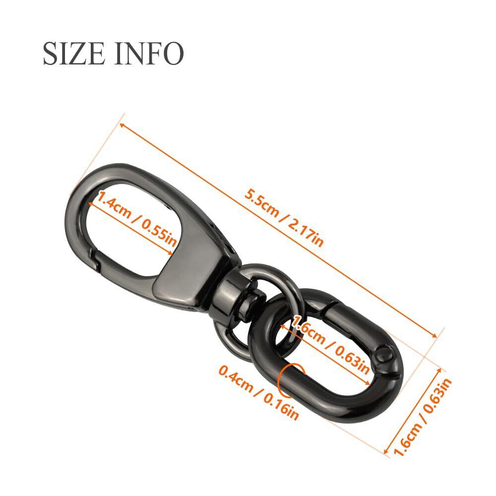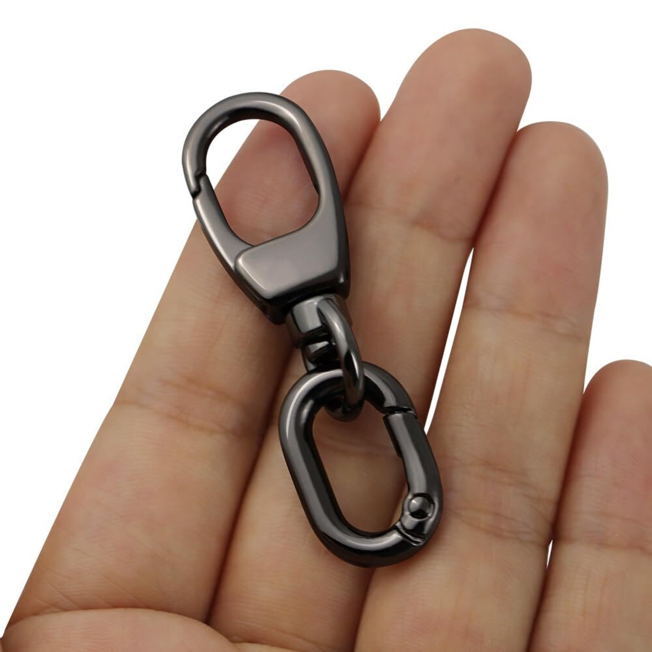2セット ナスカン 二重リング キーホルダー ワンタッチキーホルダー金具 回転カン付きナスカン キーリング 回転フック 手作り 手芸用品 ハンドメイド金具 (ブラック(b))