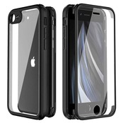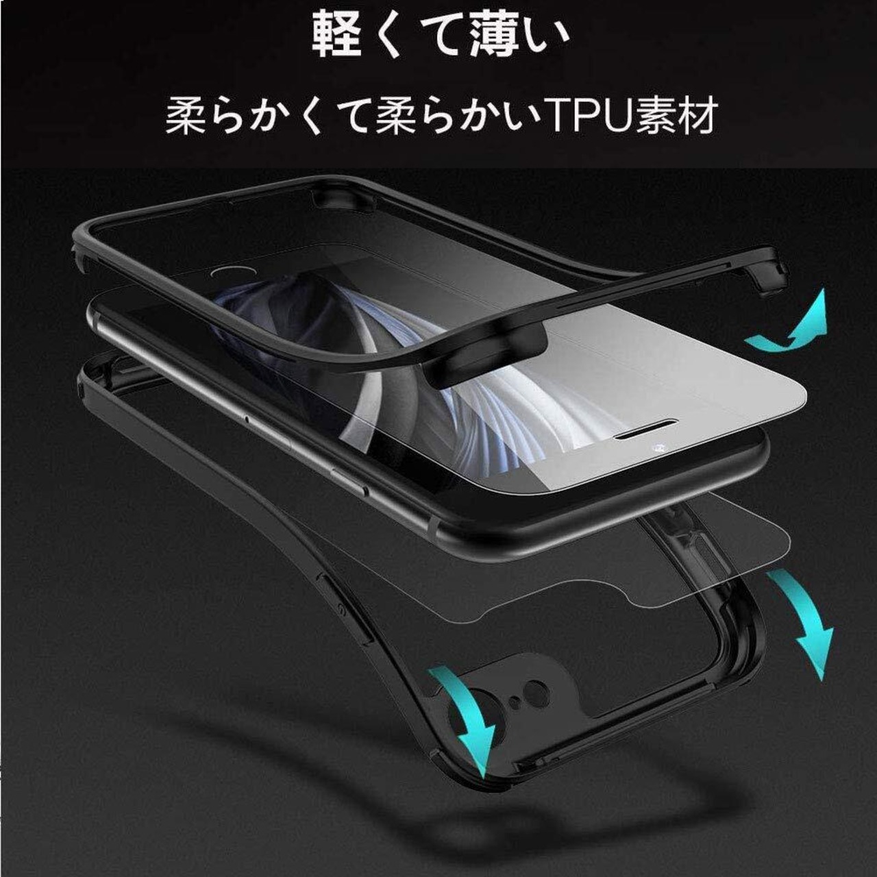 iPhone SE [第3世代] iPhone7/ 8 ケース 360°全面保護 米軍MIL規格 耐衝撃、軽量 ワイヤレス充電 指紋認証、対応クリーリアな 前後両面強化ガラス+TPU フレーム 超薄型滑り止めバンパー カバー アイフォン7/8/SE フルボディ 4.7インチ(ブラック)