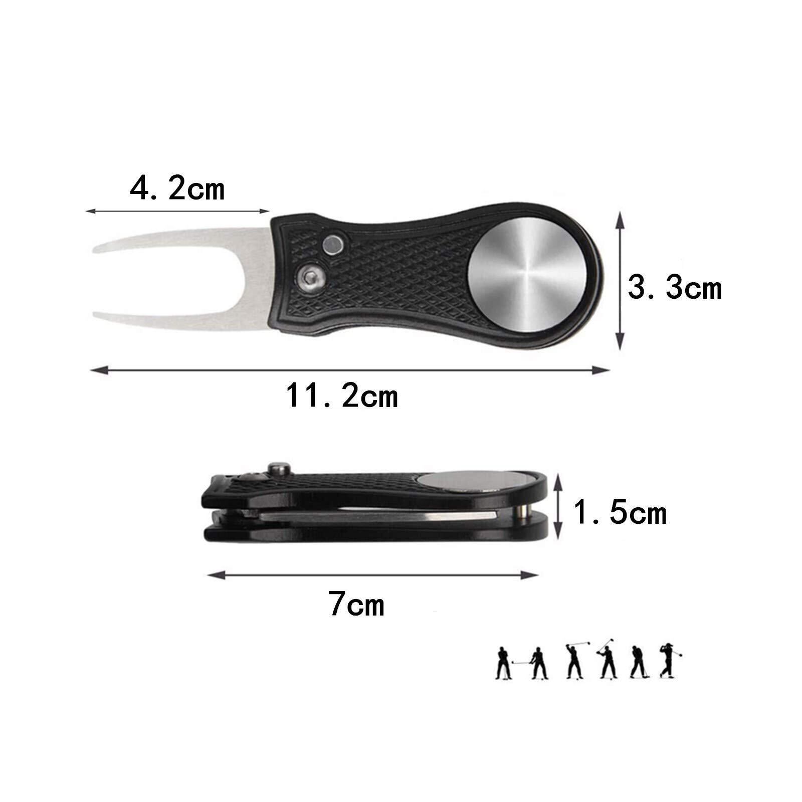 YFFSFDC ゴルフフォーク 折りたたみ式 ゴルフ フォーク 修理 フォーク 持ち運び便利 亜鉛合金 ゴルフ 用品 アクセサリー 贈り物 1個入り (ブラック 丸柄フォーク)