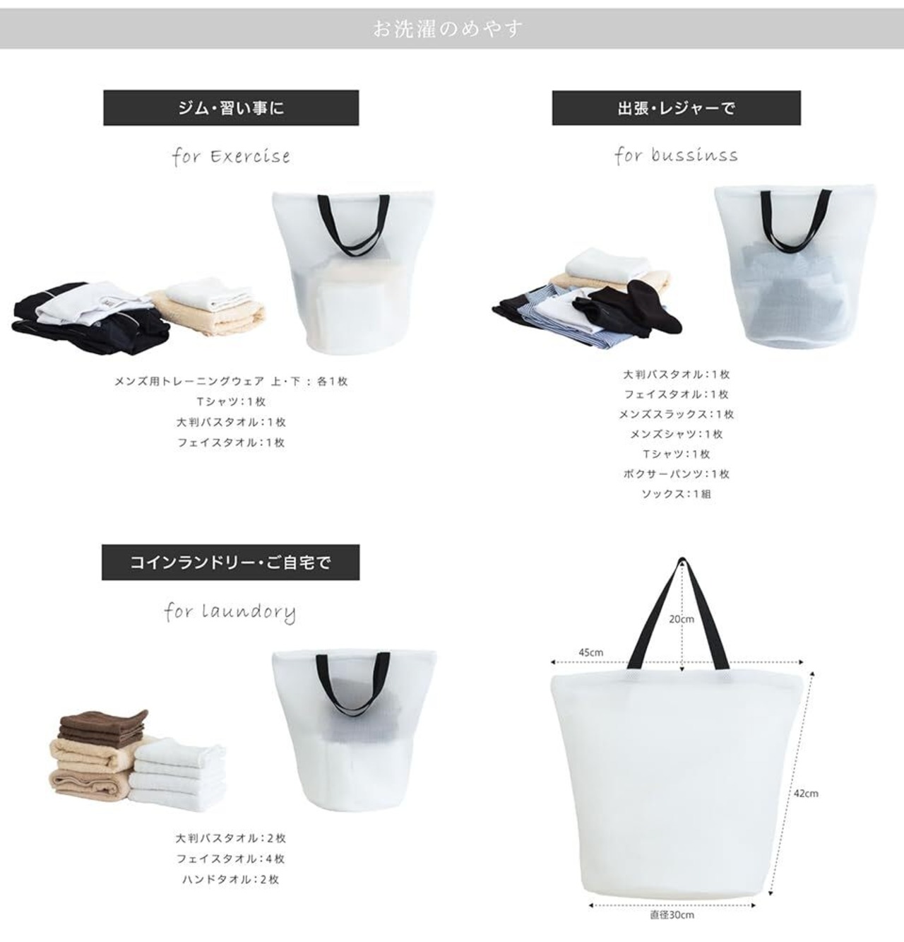 サンゴ 洗濯ネット Mサイズ 取っ手付き コインランドリー用 洗濯入れる袋 毛布が洗える 白 ホワイト 黒 ブラック モノトーン ランドリーバッグ 幅45×高さ44×マチ30cm トートバッグ 持ち運びに便利 温泉 スパ サウナ ランドリーネット まとめ洗い BYT1019372