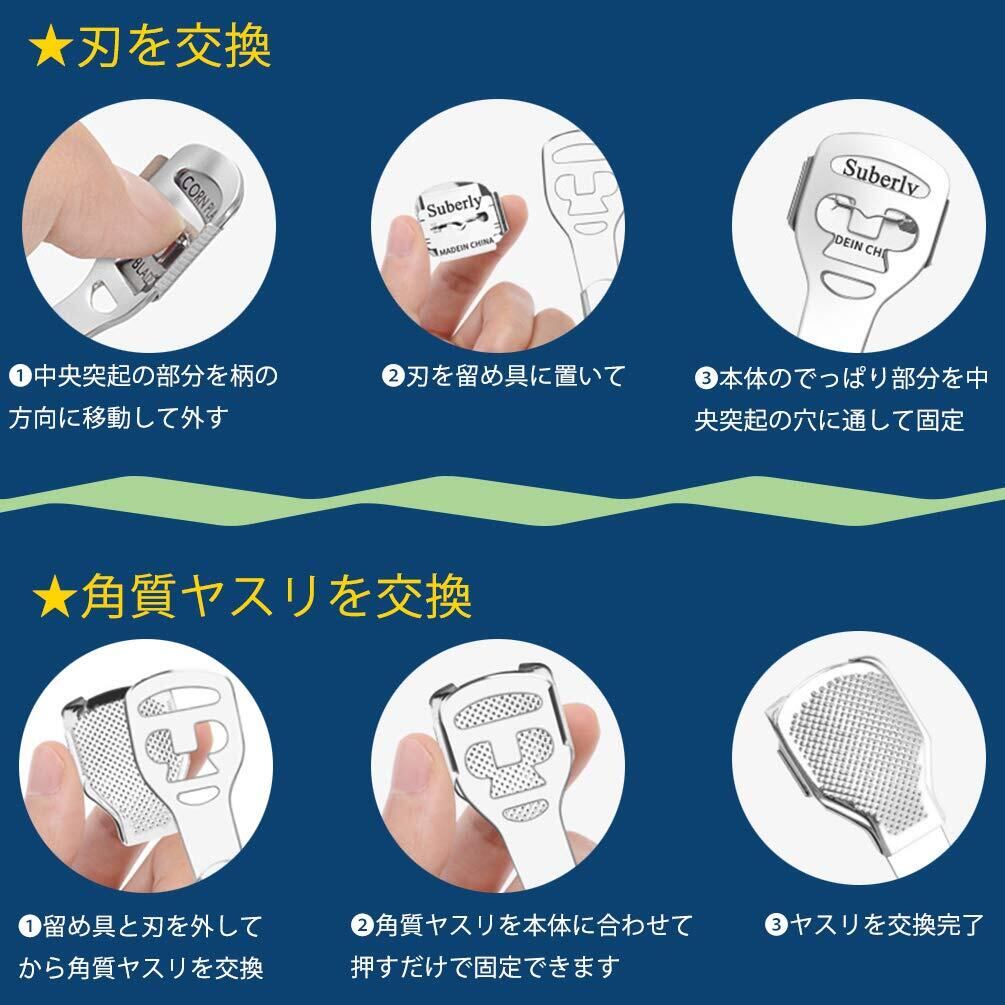 【長く使えるステンレス製】オールステンレスの安定感としっかり感、適度な重さが使う方に安心して使用いただける角質削りです。それに、単体でも10枚500円の替刃と角質削り本体に1枚の計11枚セットにしてありますので非常に経済的です。