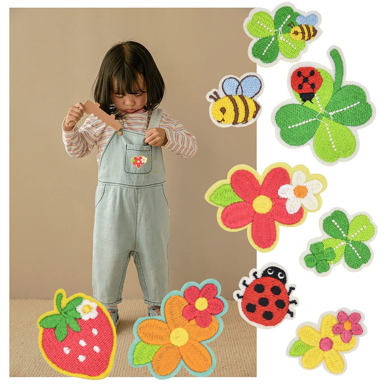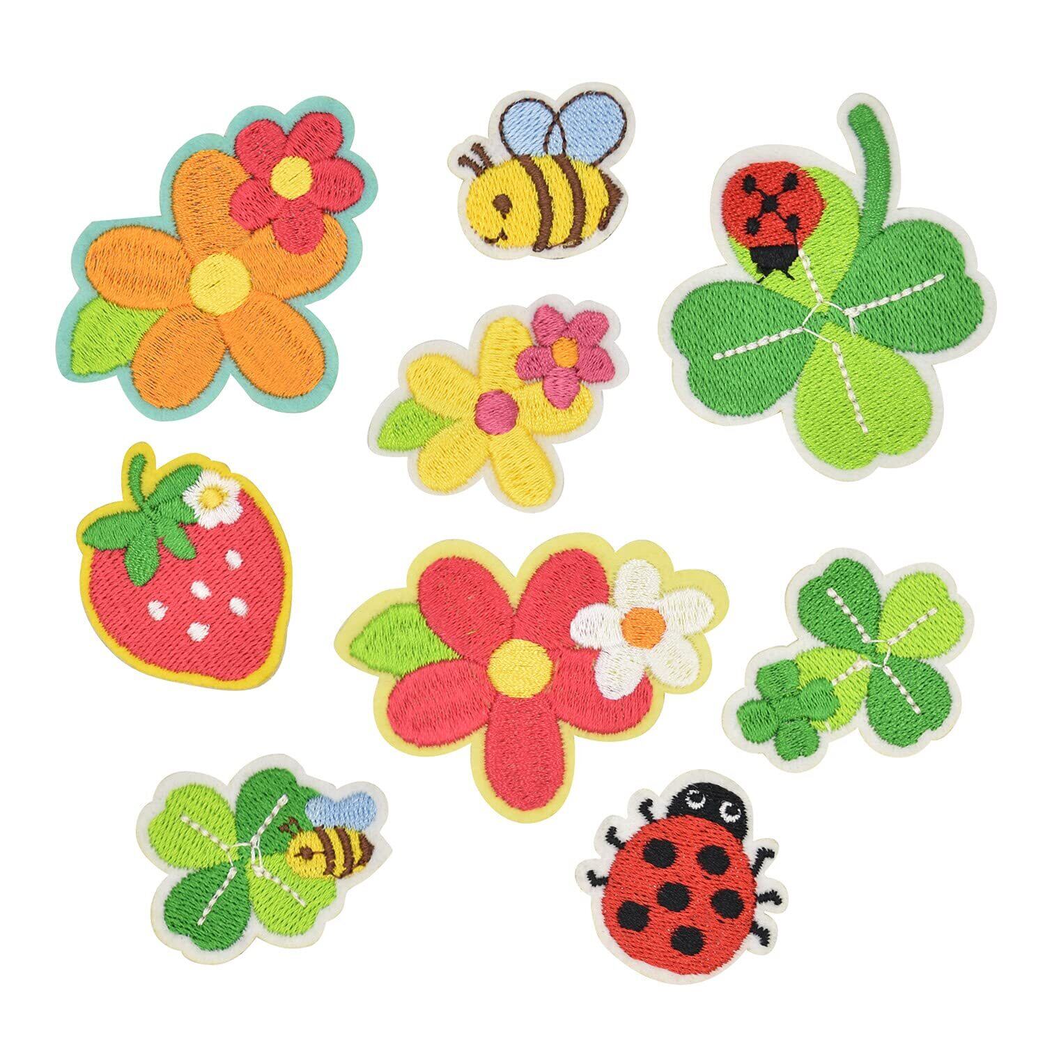 ワッペン アイロン刺繍 アップリケ DIY服 フラワー クローバー ミツバチ モチーフ カワイイ 装飾 男の子 女の子 保育園 幼稚園 パッチ 補修 9枚セット 衣類 浴衣 手袋 手帳 飾り