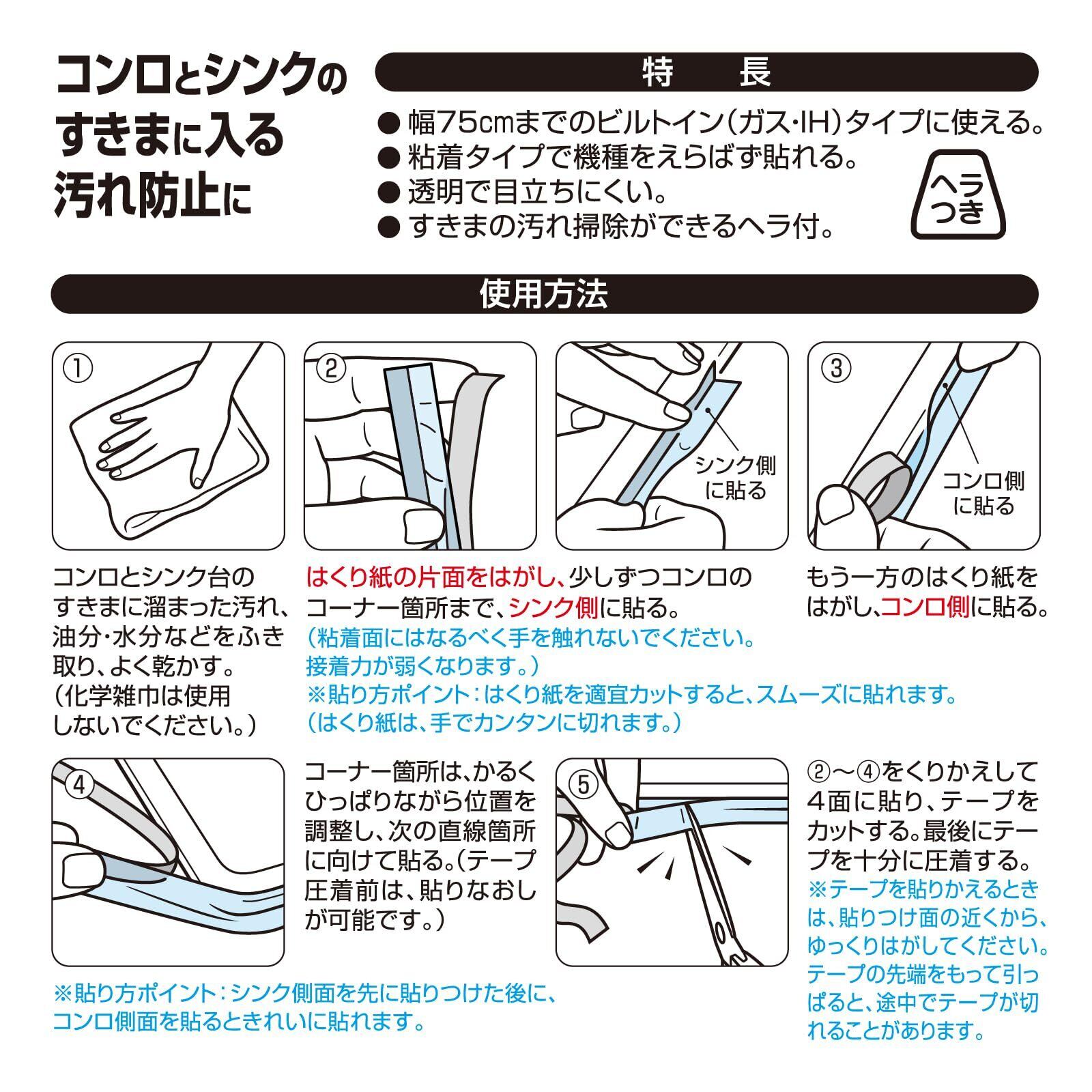 キッチンコンロとシンクのすきまに入る汚れを防止できるカバーテープです。