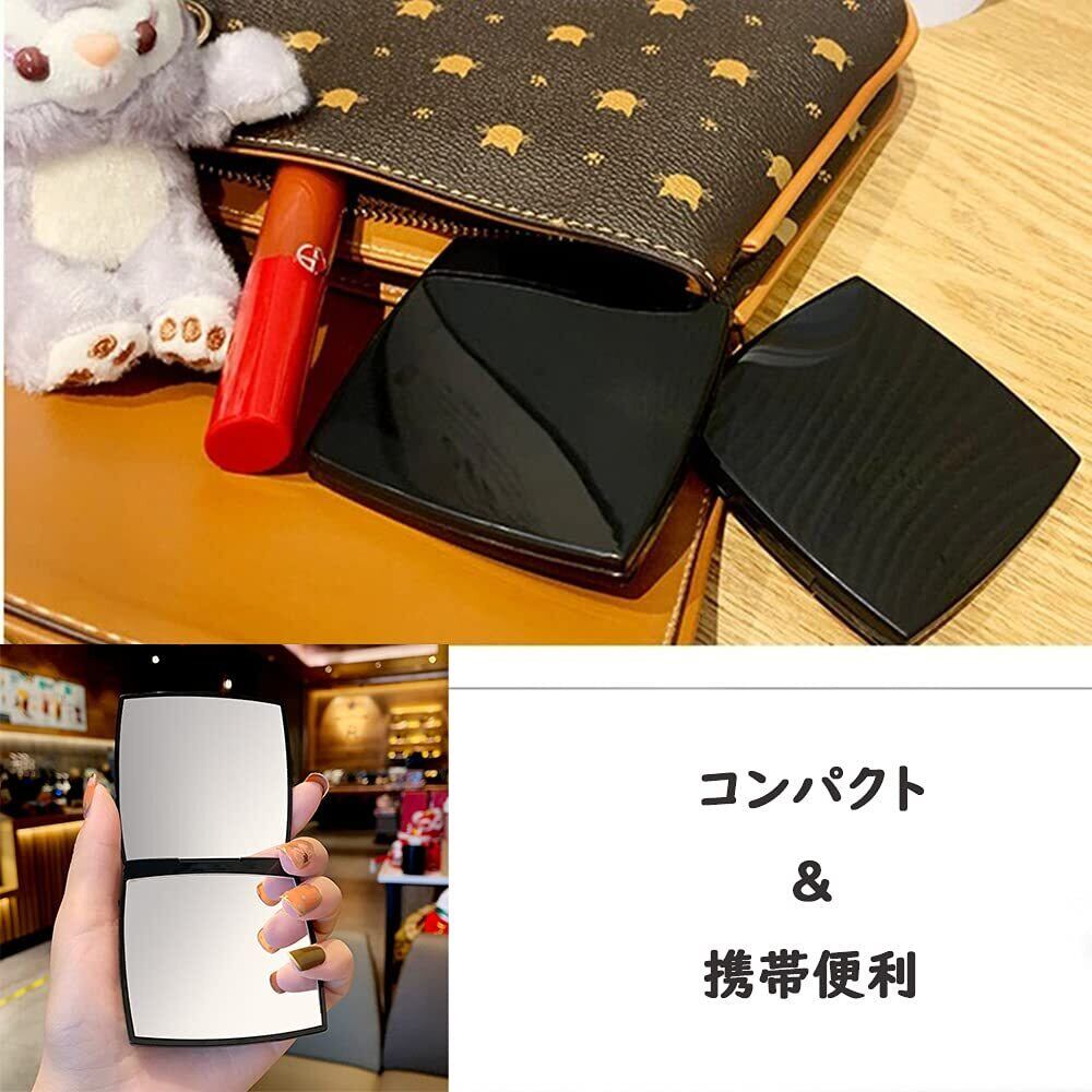 WELLONE コンパクトミラー ミラー 化粧鏡 携帯ミラー 手鏡 メイクアップミラー 鏡 2倍拡大鏡付 両面コンパクトミラー メイクミラー 折りたたみ式 角度調整可 (ブラック-角形)