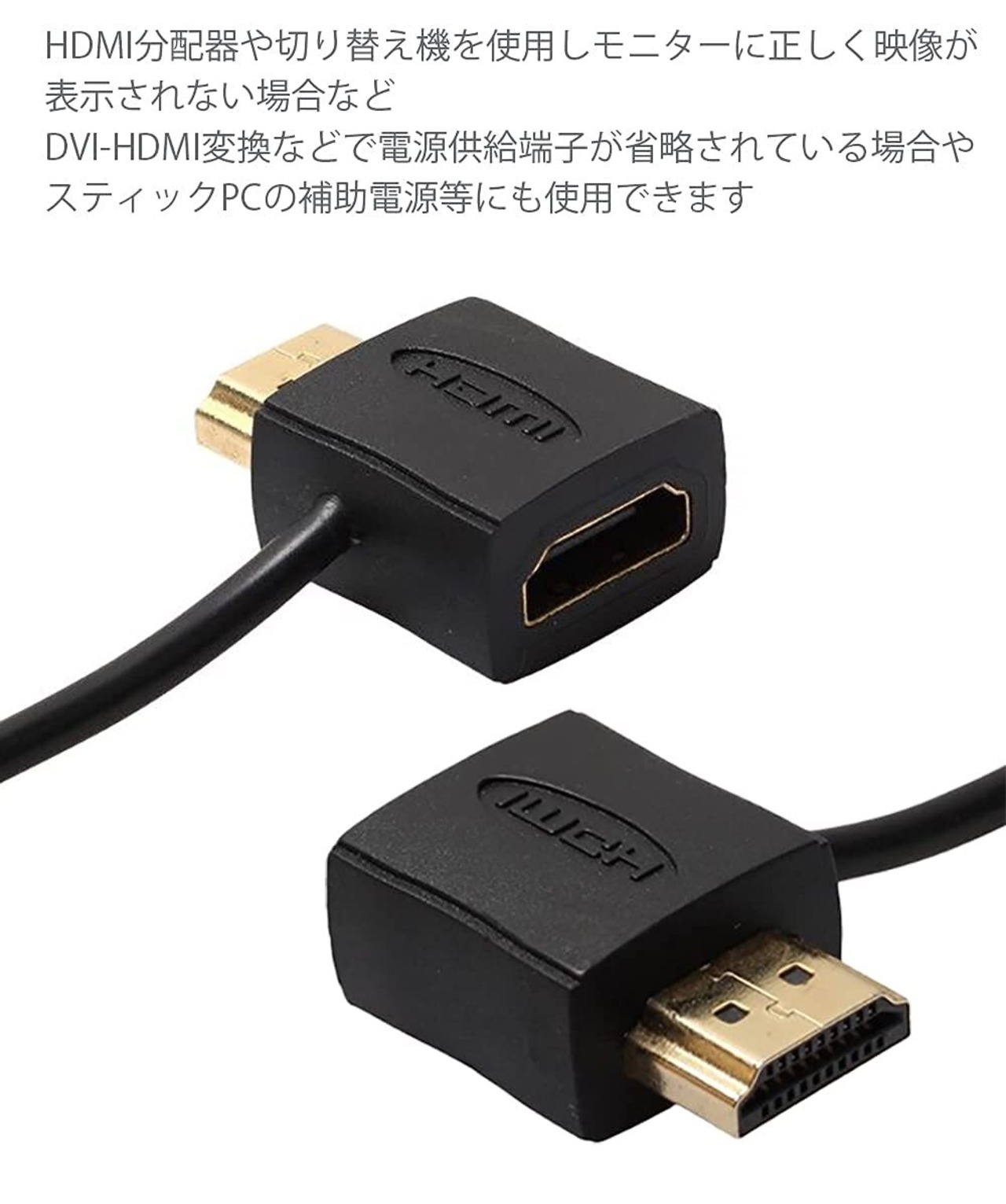 DVI-HDMI変換などで電源供給端子が省略されている場合やスティックPCの補助電源等にも使用できます