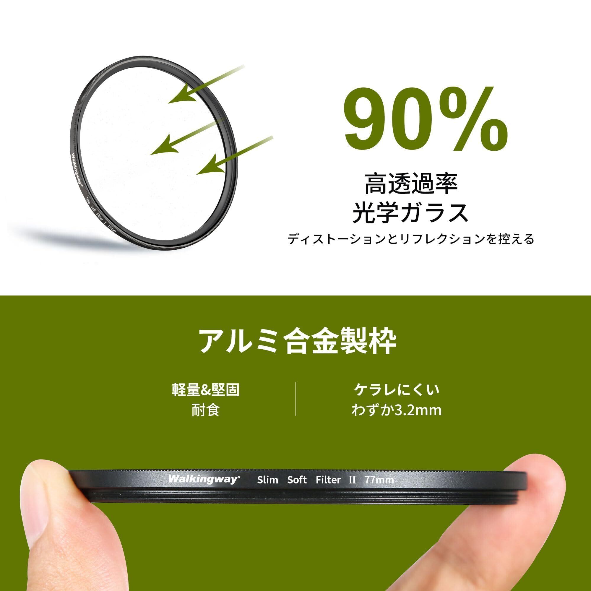 【新春セール】Walking Way 82mm ソフトフィルター コントラスト調整用 ソフト描写用フィルター ミストフィルター ホワイトソフトフィルター ホワイト拡散フィルター 航空アルミ材質 薄枠 (弱ソフト効果1+ソフト効果2) | ニコニコSHOP