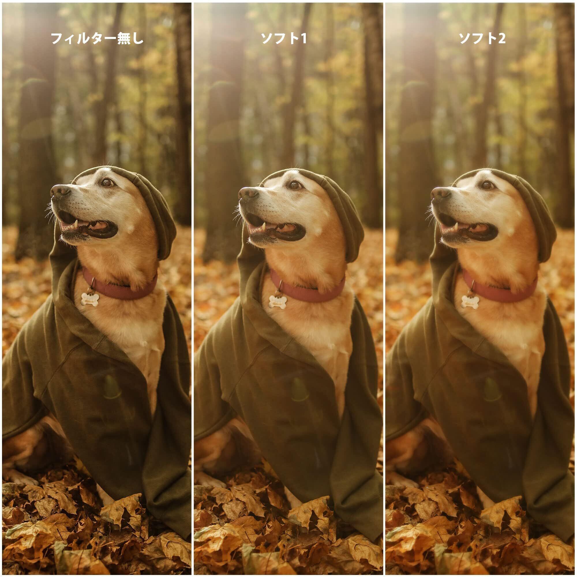 夢のような靄がかかった効果】このソフト効果のレンズフィルターは滴が均一に分散した特別なガラスを採用し、靄がかかったようになります。コントラストとフレアを抑える効果から言えば、同じ撮影条件で、ソフト効果2はソフト効果1より強いです。