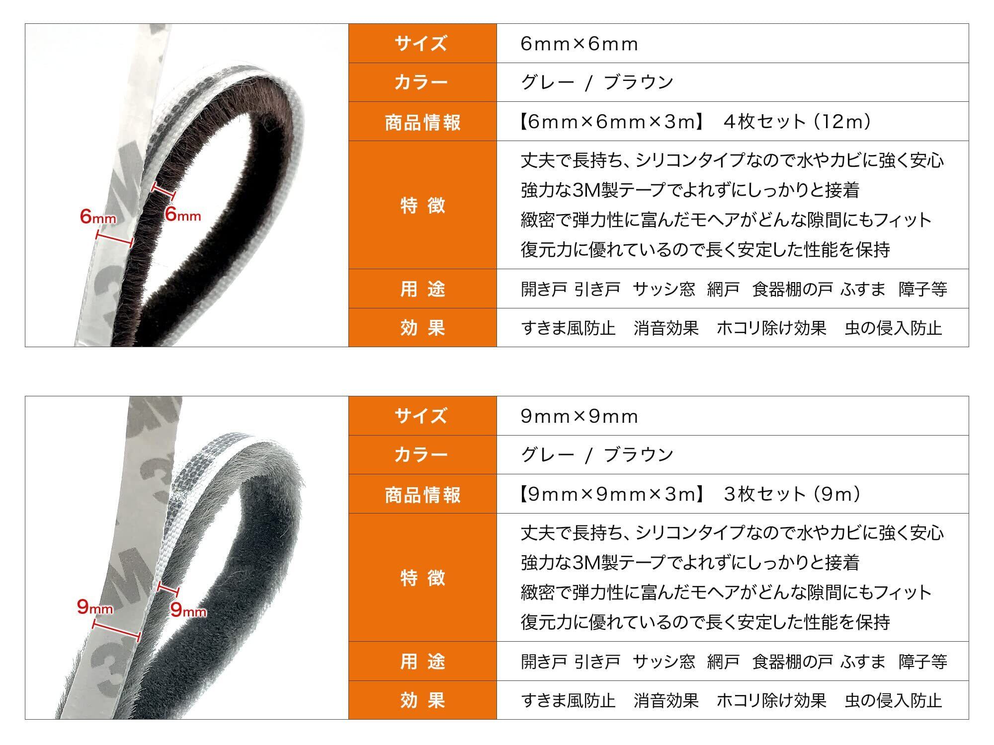 すき間モヘアテープ シリコンタイプ 幅6mm×長さ12m 幅9mm×長さ9m(WS99B)