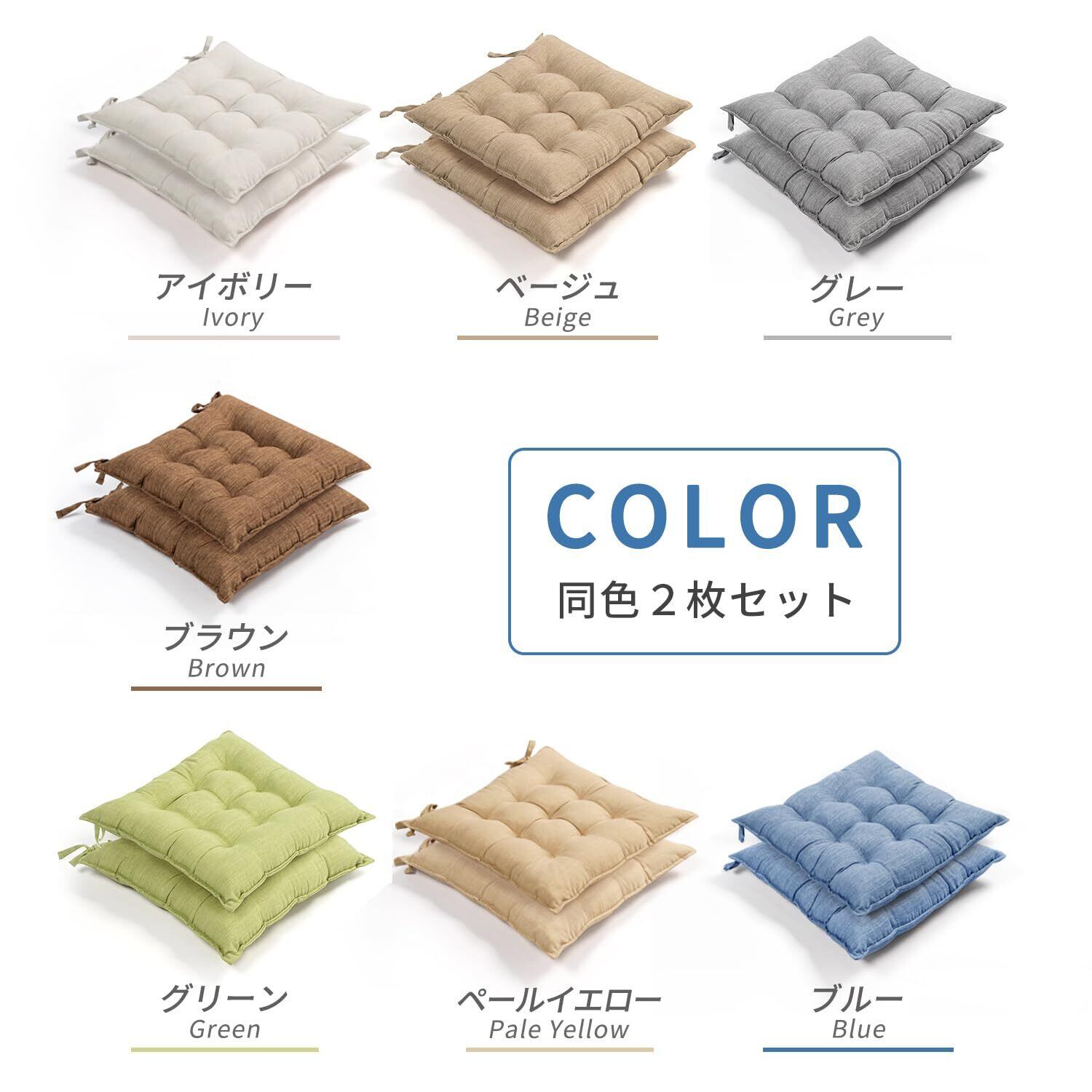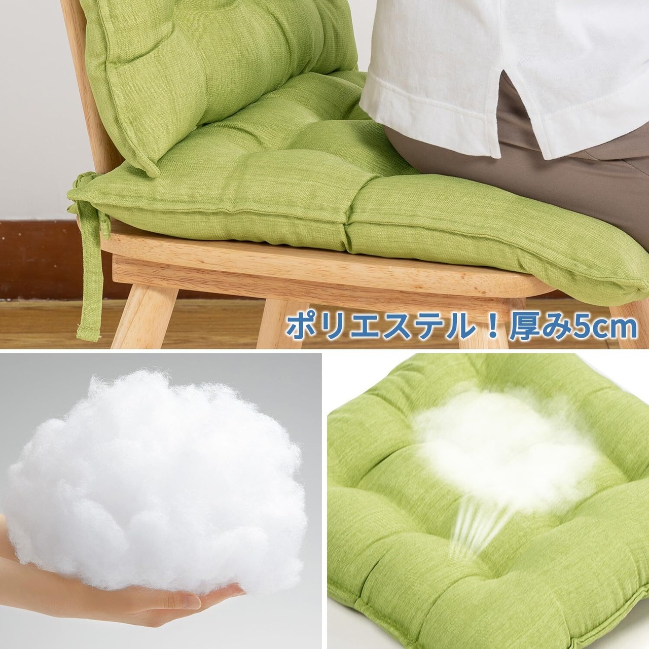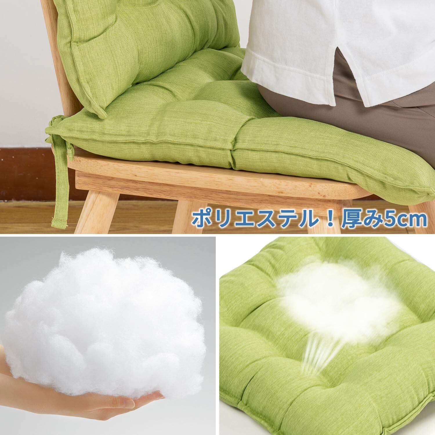 【在庫処分】AIFY 座布団 椅子 クッション 厚め 紐付き 2枚セット ふわふわ 麻風 無地 オールシーズン シートクッション ダイニングチェア用 42x42x5cm グリーン 2枚セット | ニコニコSHOP