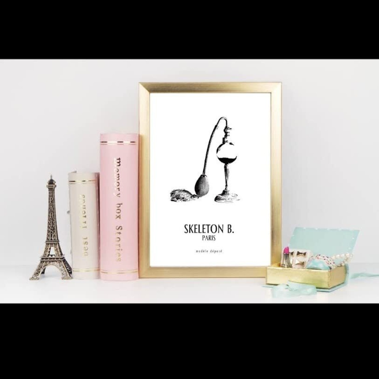 フランス パリの高級香水瓶づくりスタジオとして知られるマルセル・フランクが1950年代に制作したポンプ式のラグジュアリー・フレグランス・アトマイザー(タッセル付き)を SKELETON B. が繊細に描いたアートポスターの正規品です。(A4サイズ:フレーム付き)