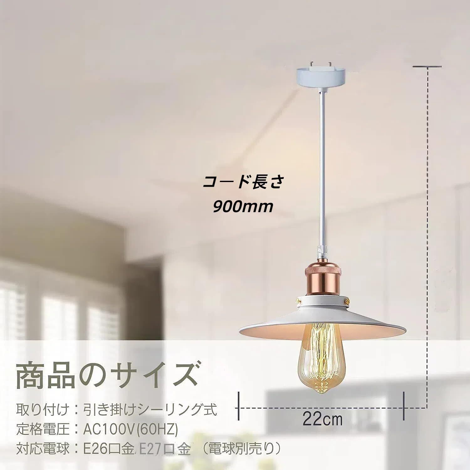 ペンダントライト アンティークレトロ 1灯 ダイニングライト吊り下げ照明 引っ掛け式 インテリア照明 E26 / E27口金 北欧 居間 食卓 玄関 キッチン レストラン 電球別売り 白