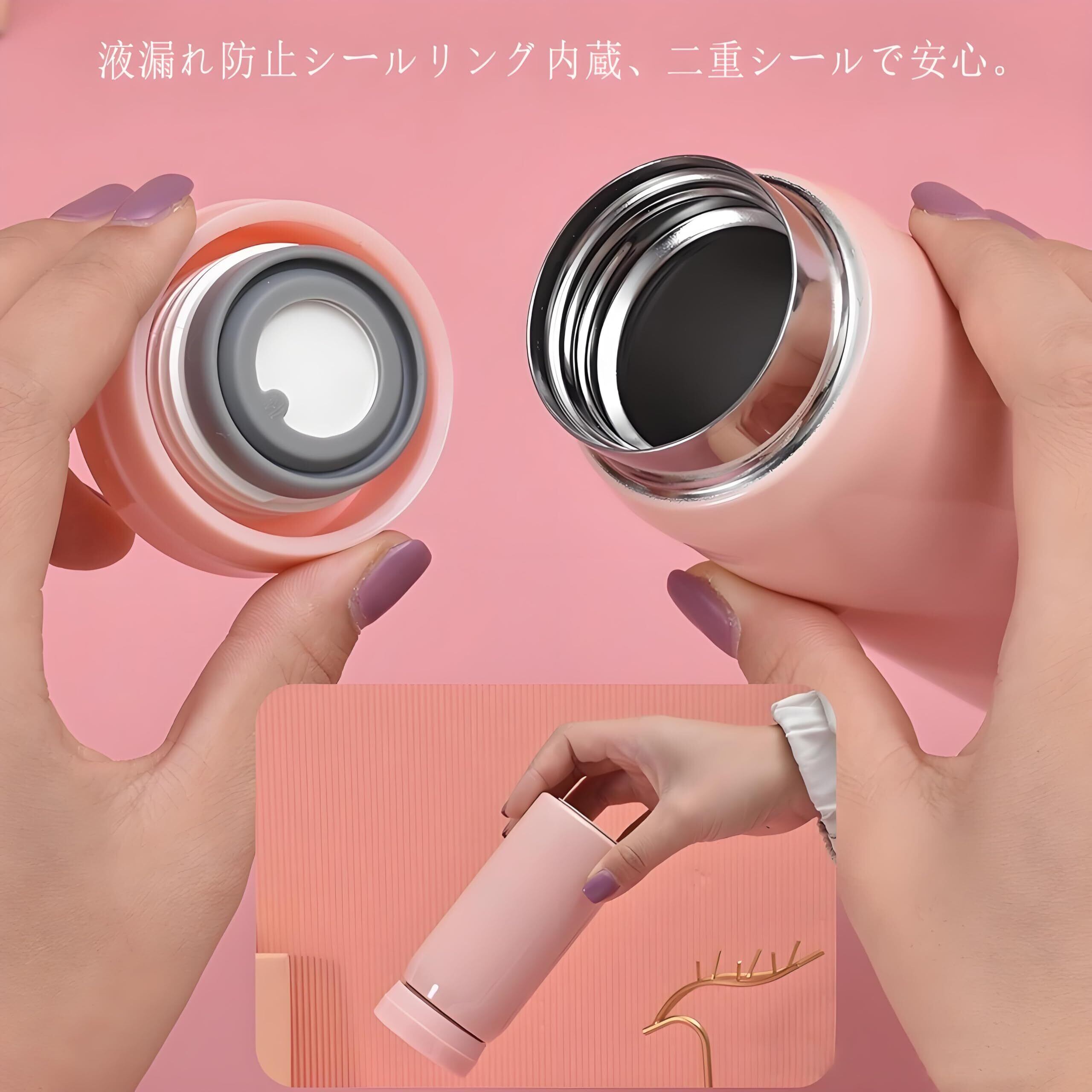 1.【ミニ断熱水筒】片手で持てるサイズ、でとても軽く、女の子に最適、子供用でも負担になりません。