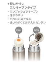 素材・材質:内びん/ステンレス鋼、胴部/ステンレス鋼(アクリル樹脂塗装)、コップ/・ポリプロピレン・ステンレス鋼(アクリル樹脂塗装)、中せん/ポリプロピレン、フタパッキン/シリコーン、せんパッキン/シリコーン