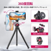 【垂直および水平方向の撮影】ボールヘッドにより、スマートフォンやカメラにもかかわらず、被写体に応じて、お好みの角度、縦や横を自由に使い分け、クオリティーの高い写真が撮れます。三脚はわずか0.29KG、全長:360mm、コンパクトで持ち運び便利。耐荷重は2kgで、携帯電話、アクションカメラ、ミラーレスカメラ、一眼レフ、Goproなどに対応できます。