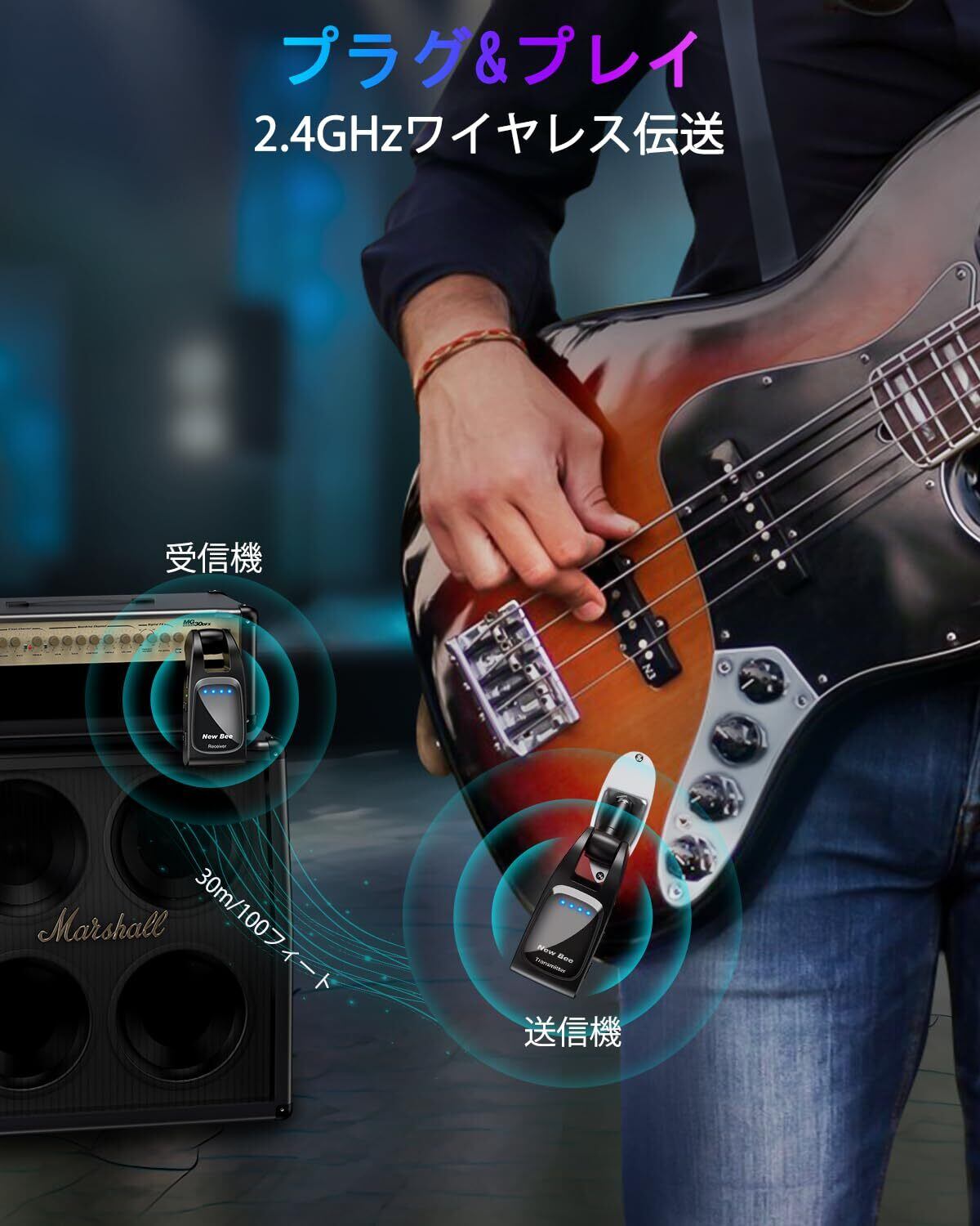 New Bee ギター ワイヤレス 送受信機 ベース エレキ ワイヤレスシールド 6.35mmプラグ 2.4GHz 6チャンネル 280°回転 1対多 USB-C充電 6時間連続使用 直接プラグ コンパクト 軽量 ブラック WJ21