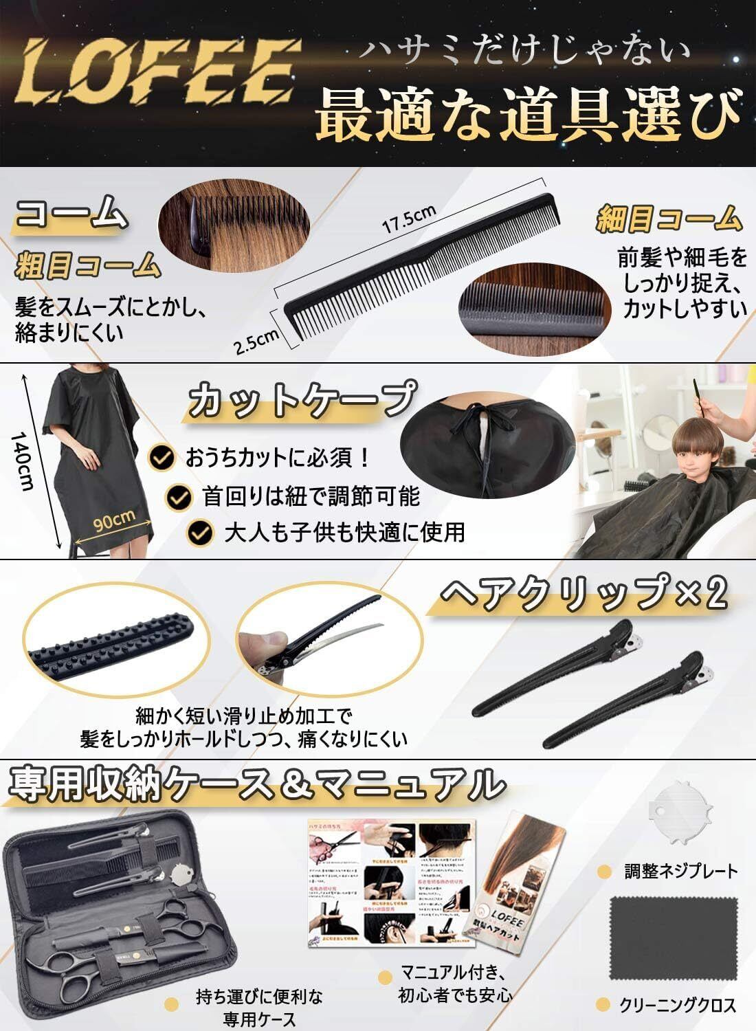 LOFEE 散髪 ヘアカット すきばさみ セット ハサミ シザー 左右 プロ 初心者 美容師 理容師 セルフカット カットはさみ ケース付 くし付き カットケープ付 ブランド登録済み