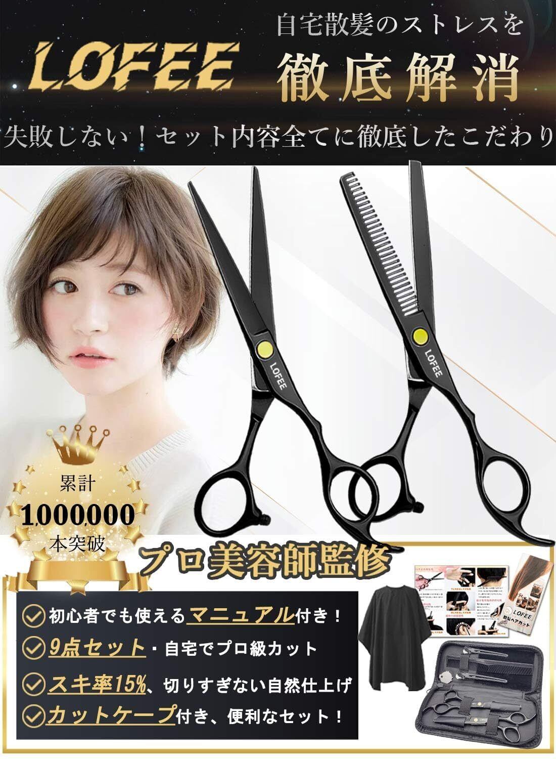 【在庫処分】LOFEE 散髪 ヘアカット すきばさみ セット ハサミ シザー 左右 プロ 初心者 美容師 理容師 セルフカット カットはさみ ケース付 くし付き カットケープ付 ブランド登録済み | ニコニコSHOP