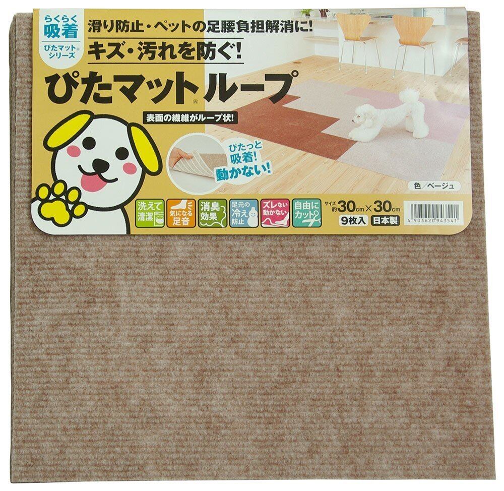 ワタナベ工業 国産タイルカーペット 吸着ぴたマット ループ 9枚組 30X30cm ベージュ