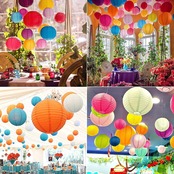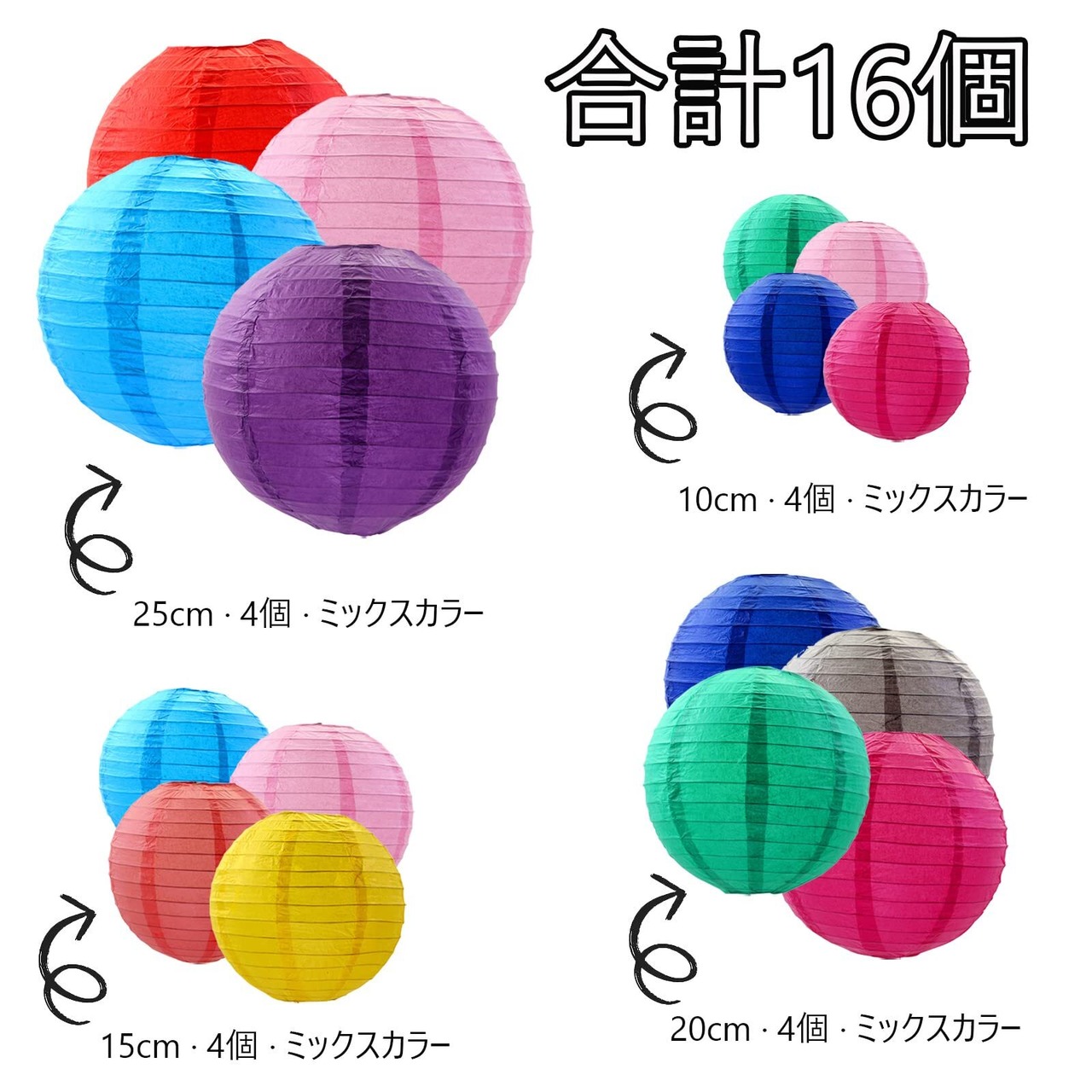 【在庫セール】16個セット提灯ちょうちん 紙ちょうちん ペーパーランタン パーティー イベント 祭りちょうちん 丸紙ランタン 混色 10cm/15cm/20cm/25cm各4個 取付簡単 | ニコニコSHOP