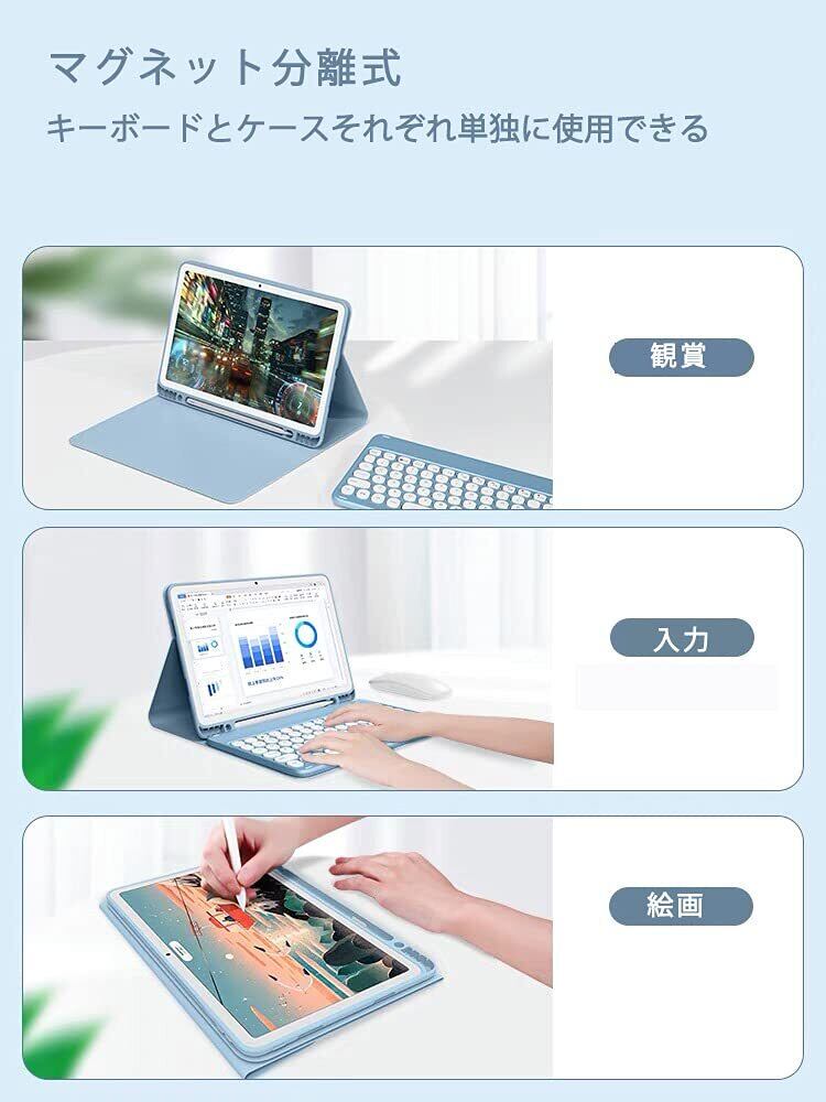 【分離式】Bluetoothキーボードはカバーとマグネット分離式でそれぞれ単独に使用できます、Windows・Android・iOSの3種類のOS対応なので、色んなスマホ、タブレットでの利用可能です。