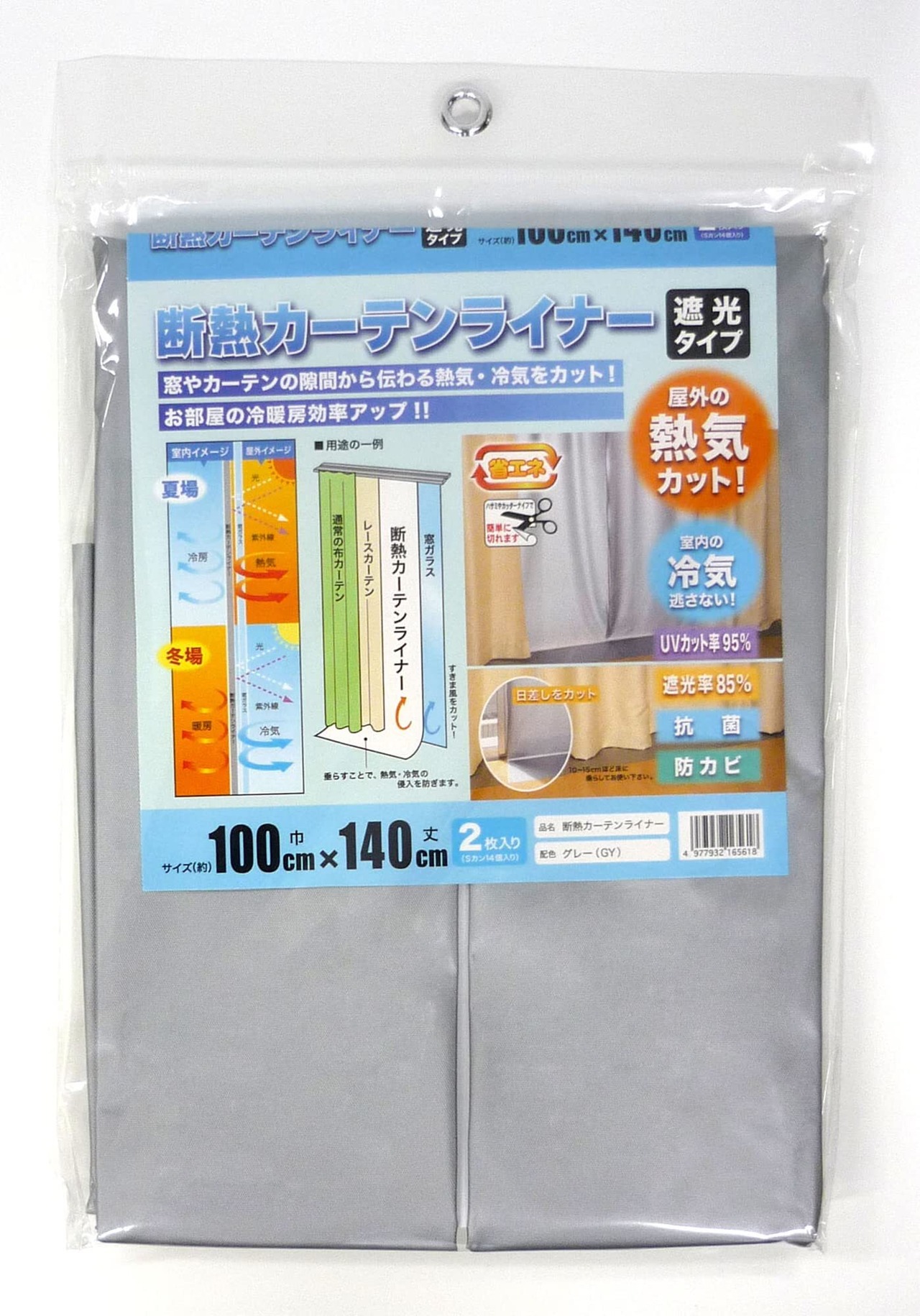 明和グラビア 冷気を防ぐ 窓 冷暖房効率UP カーテン 省エネ 節電 遮光 UVカット 取り付け簡単 グレー 断熱カーテンライナー 100cm×140cm 2枚入