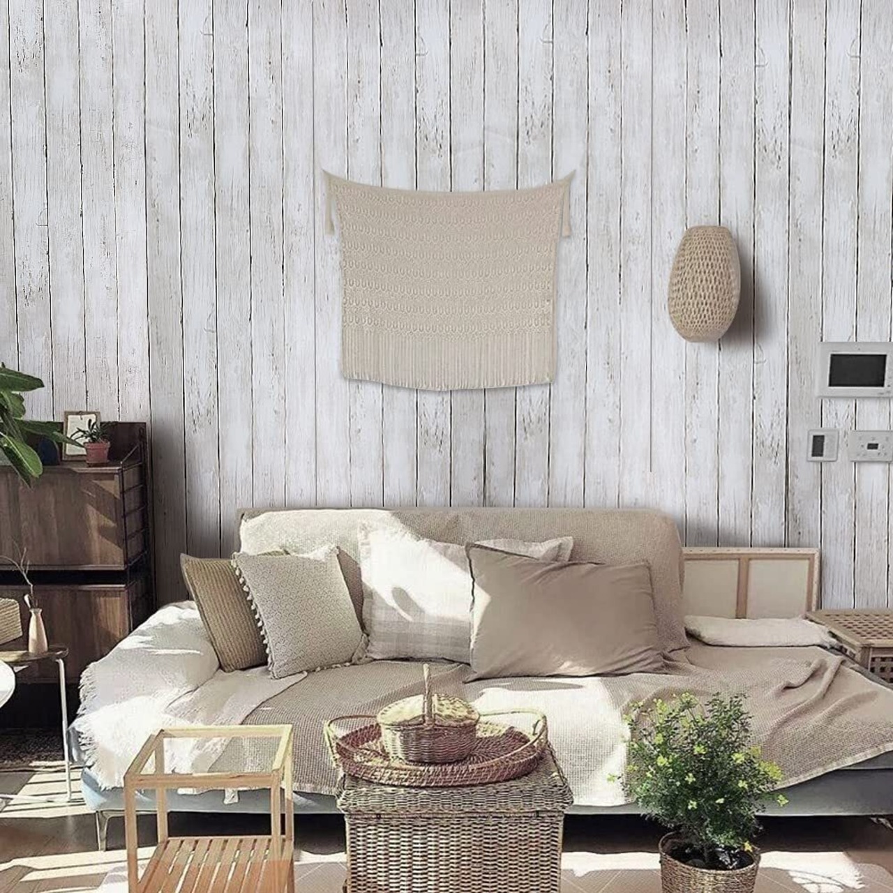 壁紙シール はがせる おしゃれ 壁紙 厚手 リメイク リフォーム カッティング シート ウォール ステッカー 木目調 長さ10m 壁紙 (白グレー 楓 木目)