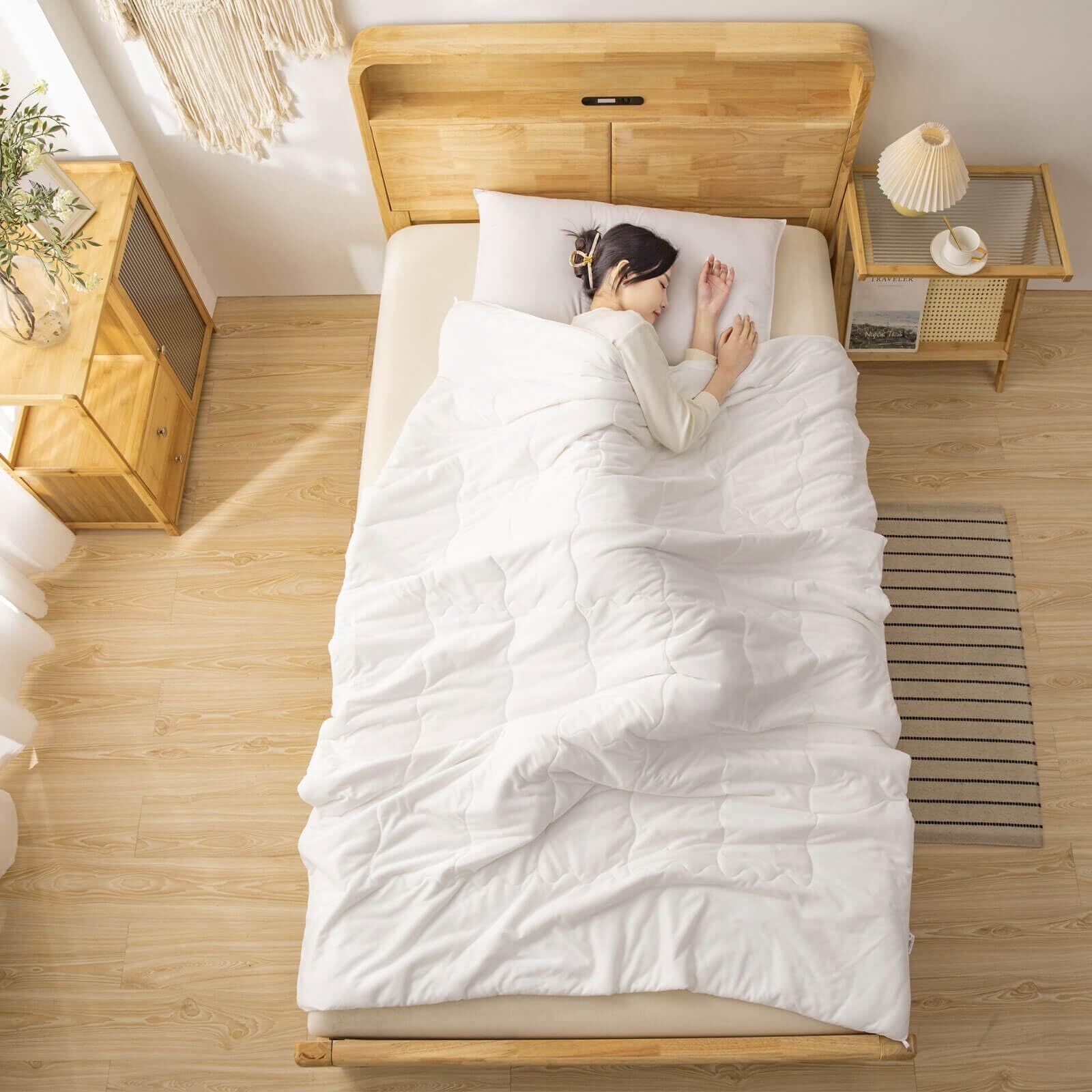 【究極の肌触り】この肌掛け布団は、ポリエステル100%の生地で作られており、肌に優しくフィットします。まるで軽い羽毛のような感触が特徴で、毎晩の睡眠を快適なものに変えてくれます。