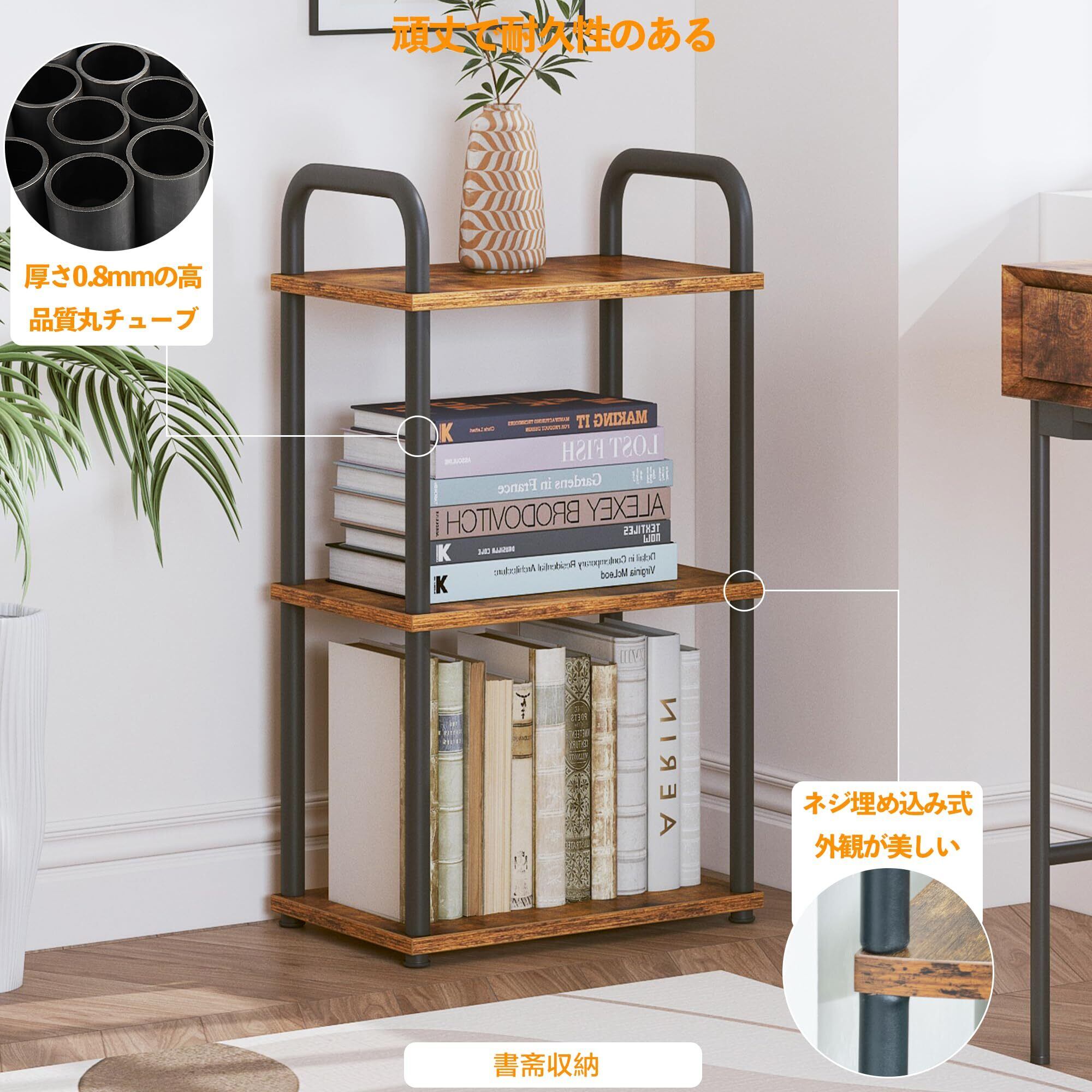 HCHQHS キッチンラック おしゃれ オープンシェルフ 本棚 組立品 3段 ディスプレイ 食器棚 スリム 隙間収納 木目 組立簡単