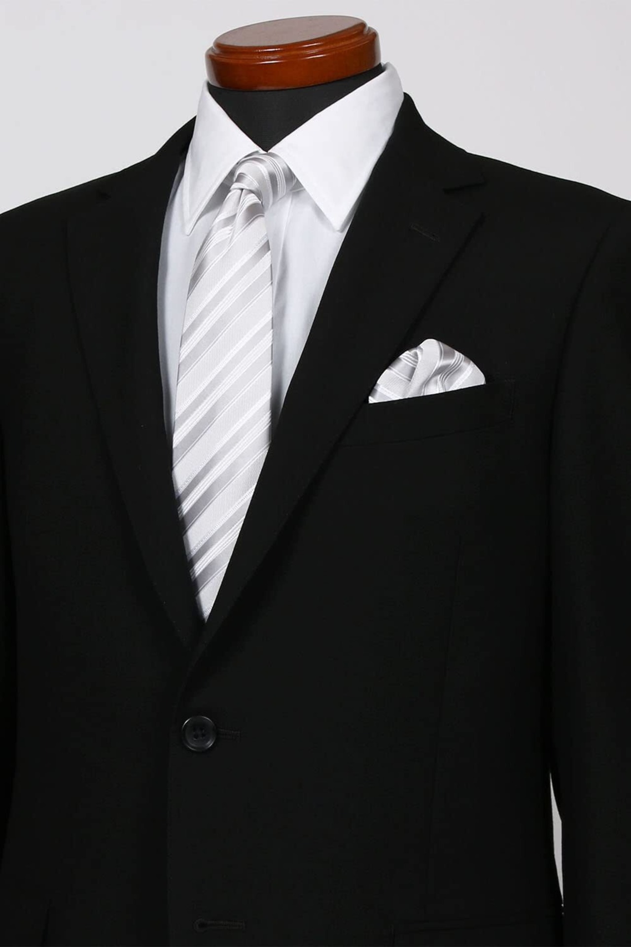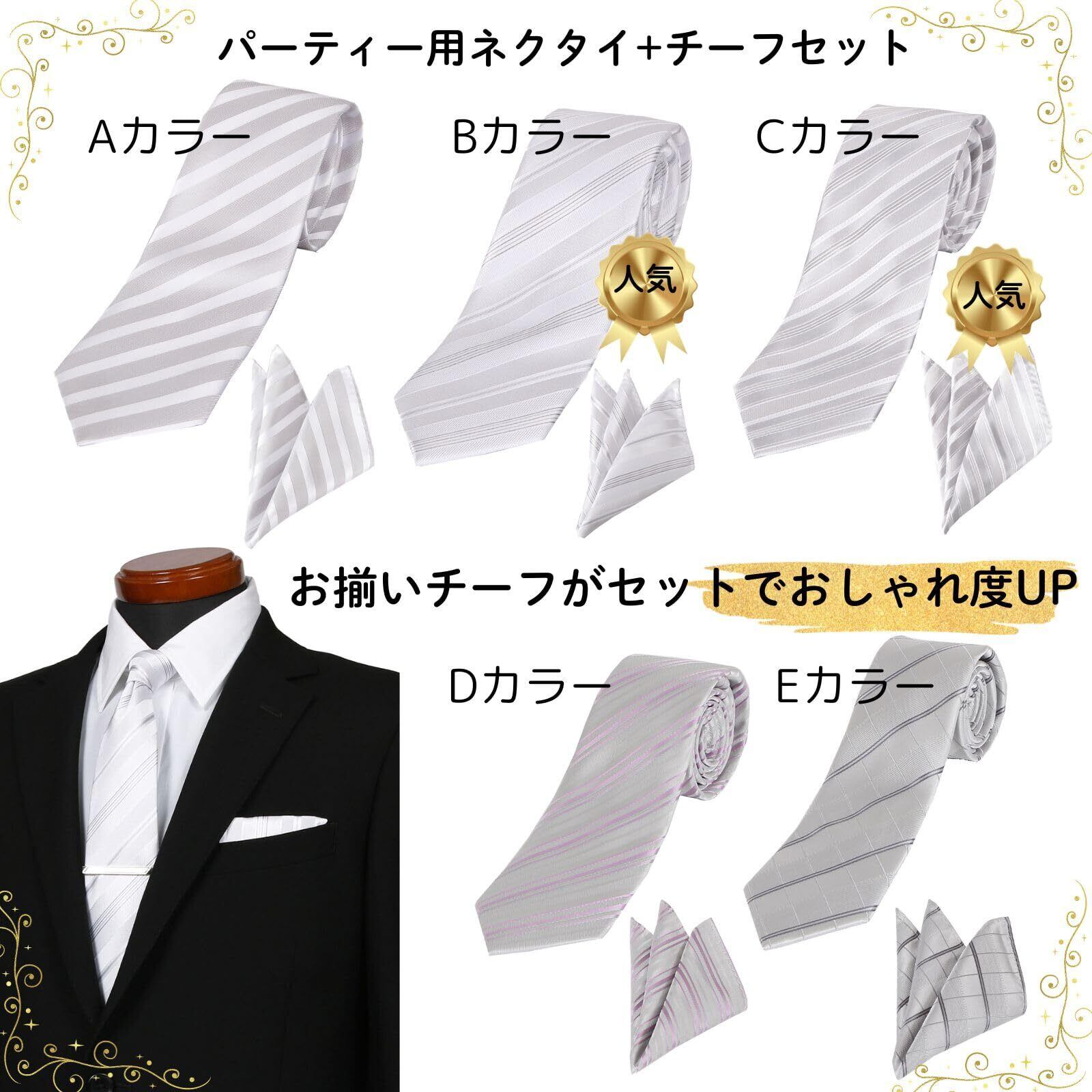 [ロイヤルコード] 結婚式 ネクタイ&チーフ セット 白 シルバー グレー 礼服 フォーマル メンズ ネクタイ パーティー 2次会 洗える 2点セット(ネクタイ+チーフ