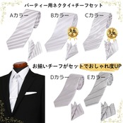 ✨[着用シーン] 結婚式、入学式、卒業式、慶事にオールマイティーに使える上品なシルバーネクタイです。同じ生地のチーフ付きで、よりフォーマルな印象。