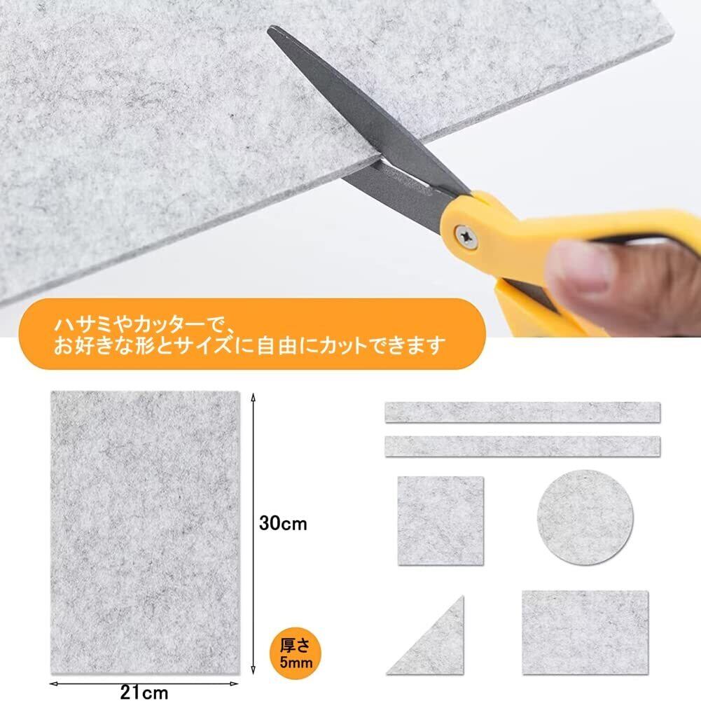 フェルトシート フェルトパッド 大判30×21cm 厚手 家具 マット フェルト 粘着シート キズ防止 フェルト 騒音対策 家具保護 フェルトシート 3枚入り (グレー)