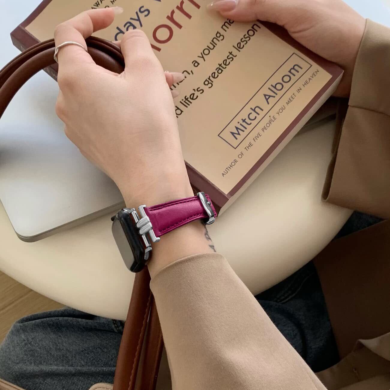 [ドレッシーなウォッチバンドデザイン】Slim iWatchウォッチバンドは、ユニークでエレガントなI字型デザインが特徴で、くすんだ伝統的なレザーバンドとは一線を画し、よりスタイリッシュで鮮やかです。洗練されたステンレススチールのタングバックルには、固定された金属製のロックリングが付いており、時計をよりしっかりと固定し、緩んだり落ちたりすることなく手首にぴったりとフィットします。