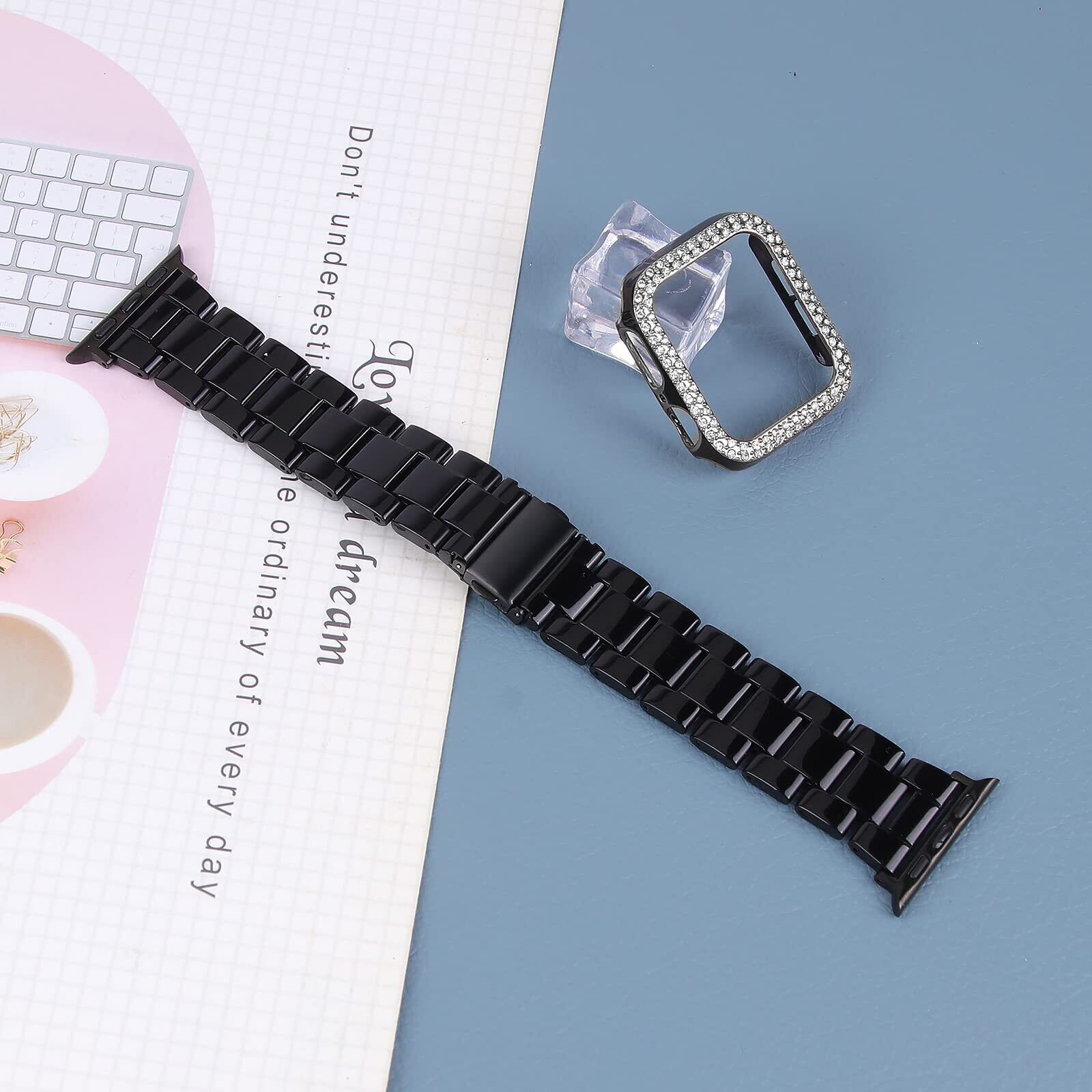[GOCROWEEN] for Apple Watch 用 バンド ウォッチバンド 樹脂バンド 2個の保護ケース付き ダイヤモンド Apple watchケース 長さ調整ツール付き Apple Watch 交換バンド ステンレス留め金 軽量 装着簡単 ビジネスバンド Apple Watch Series 6/SE/5/4 40mmに対応(40mm/ブラック+シルバー)