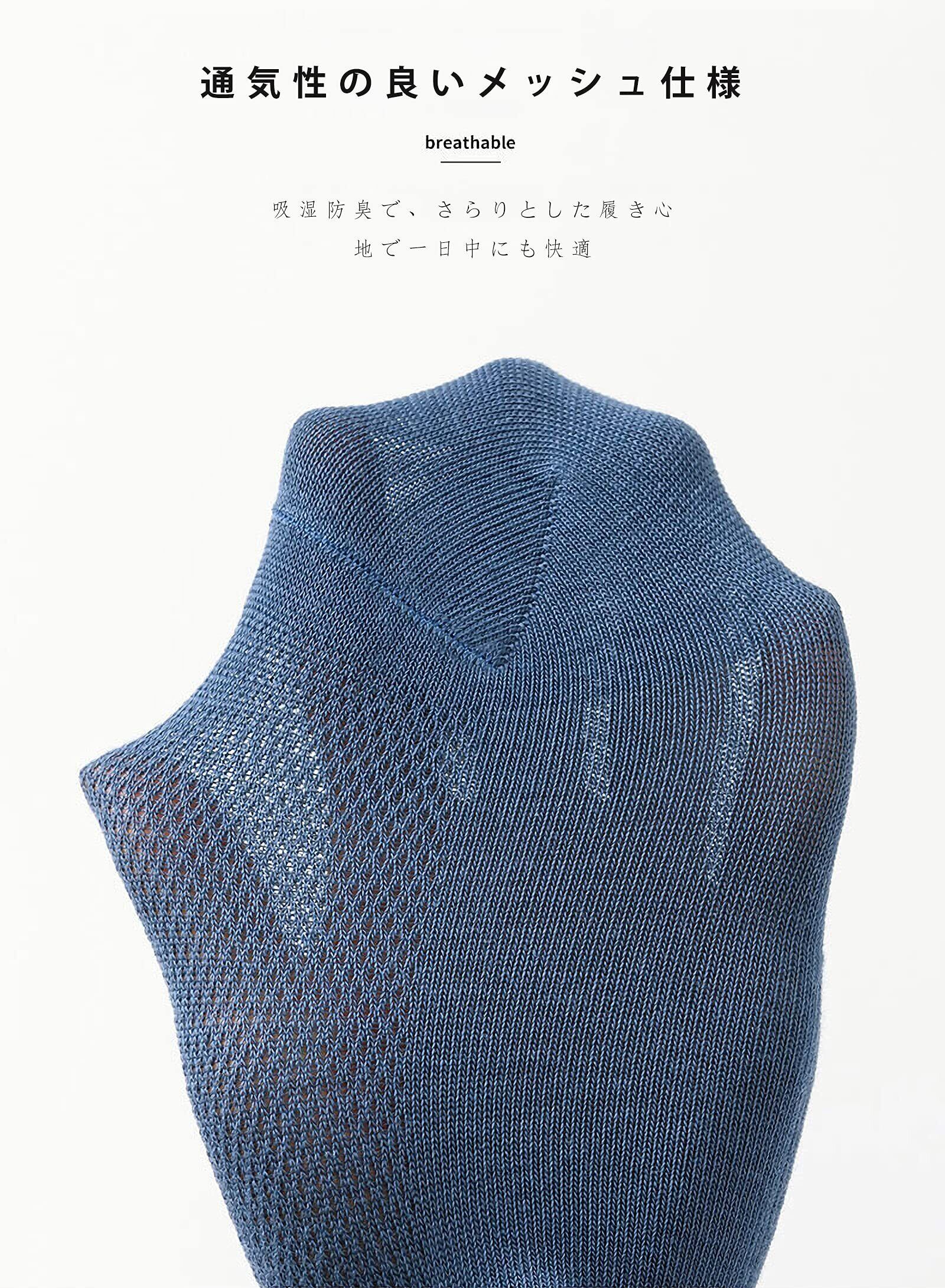 【一年中使えるショートソックス】これらのショートソックスの甲部分はメッシュ仕様で通気性に優れて、暑い季節やスポーツシーンなど、夏場に爽やかに履けるのは嬉しいポイントです。厚すぎず、薄すぎない適当な厚みで季節問わず、春夏秋冬にも快適にお使いただけます。