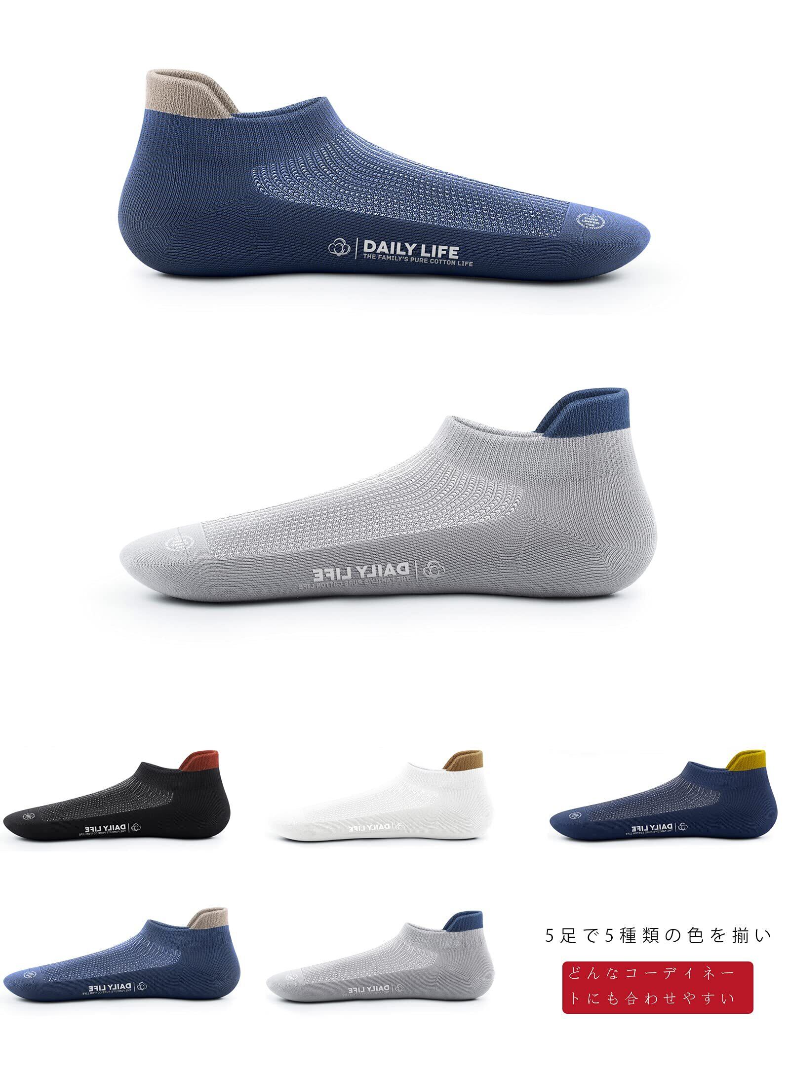 【特価セール】[Qureosert] 靴下 メンズ くるぶし ソックス 5足セット スポーツソックス ショート丈 メッシュ仕様 通気性 薄手 脱げない 夏用 24-27cm 通勤 カジュアル ビジネス | ニコニコSHOP