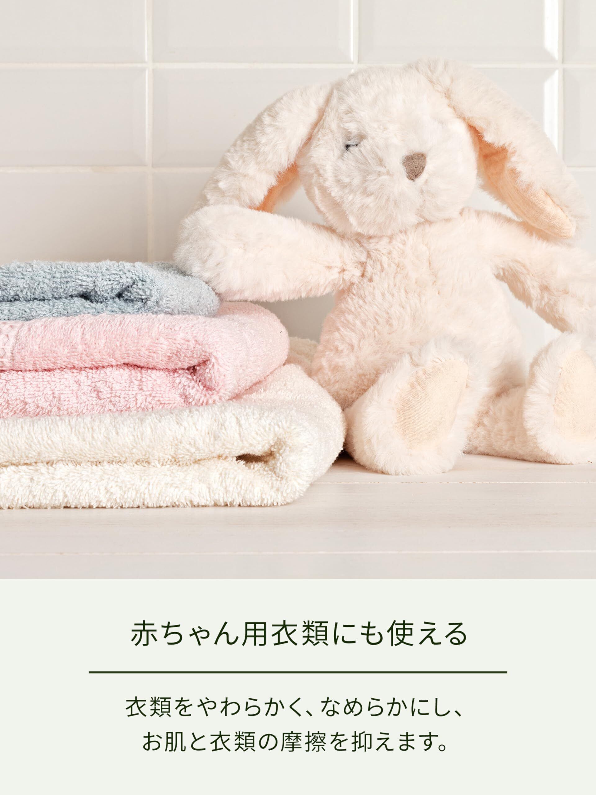 植物由来の柔軟成分(ヤシ油)使用で、ふわふわの仕上がりに。
