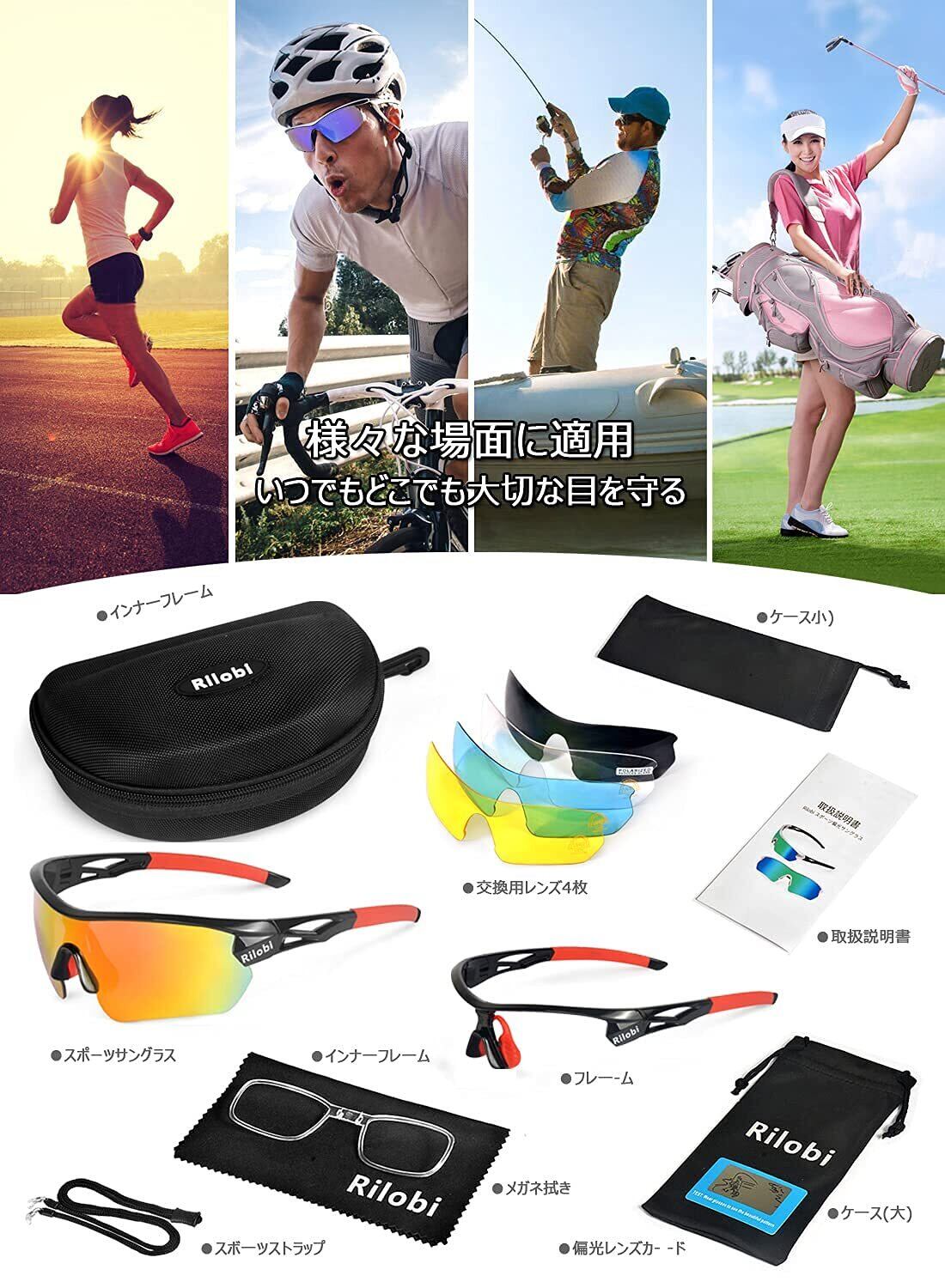 [Rilobi] 【ロードサイクリスト新城幸也の推薦】 偏光スポーツサングラス 交換可能レンズ5枚、フレーム2本 付き、サングラス メンズ レディース 超軽量 UV400 サイクリング ランニング 釣り ゴルフ 野球グラス