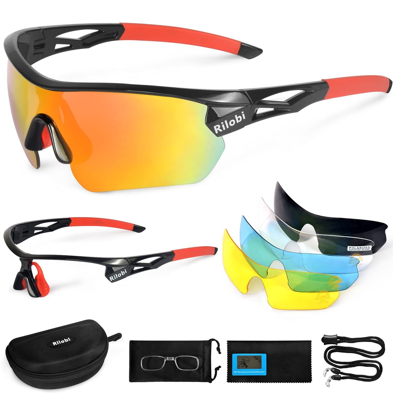 【特価商品】[Rilobi] 【ロードサイクリスト新城幸也の推薦】 偏光スポーツサングラス 交換可能レンズ5枚、フレーム2本 付き、サングラス メンズ レディース 超軽量 UV400 サイクリング ランニング 釣り ゴルフ 野球グラス | ニコニコSHOP