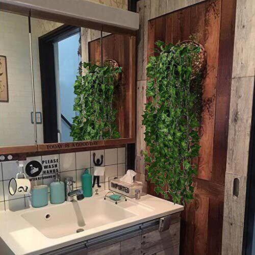 フェイクグリーン 観葉植物 アイビー 造花 藤 壁掛け 葉 グリーン インテリア 飾り ホーム オフィス ベランダ ガーデン 吊り 人工観葉植物 結婚式 植物装飾 パーティー 装飾 植物 (「緑」12本セット)