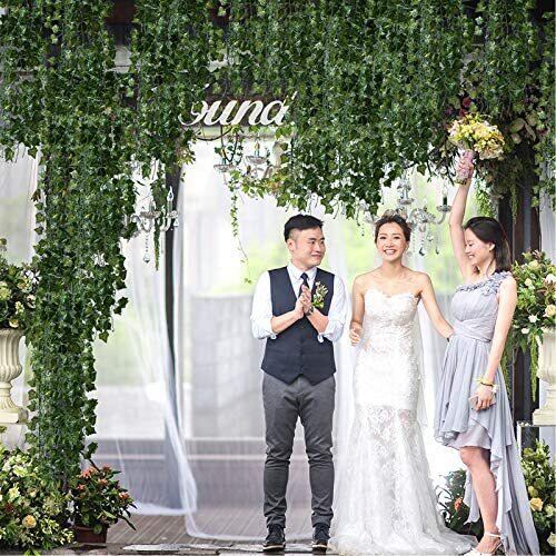 仕様概要:フェイクグリーンは24本入り、12本づつ束まとめております。1本には約80枚葉っぱがあり、1本全体の長さ約2m、ハート形状の葉っぱの長さ約3~4cmです。24本入っているので、何箇所に分けて使えることもできるし、見慣れた部屋に自然の緑を増やし、フラワー等と結び、ハイクオリティの芸術品を造れます。