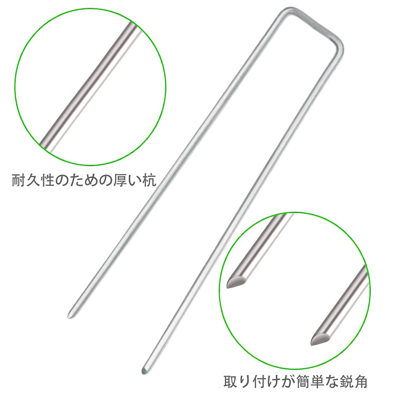 【広く用途】防草シート、人工芝、農業用防虫ネット、不織布、ビニールマルチ、各種シート・マット等を地面に設置・固定できるU字型ピンの商品です。