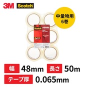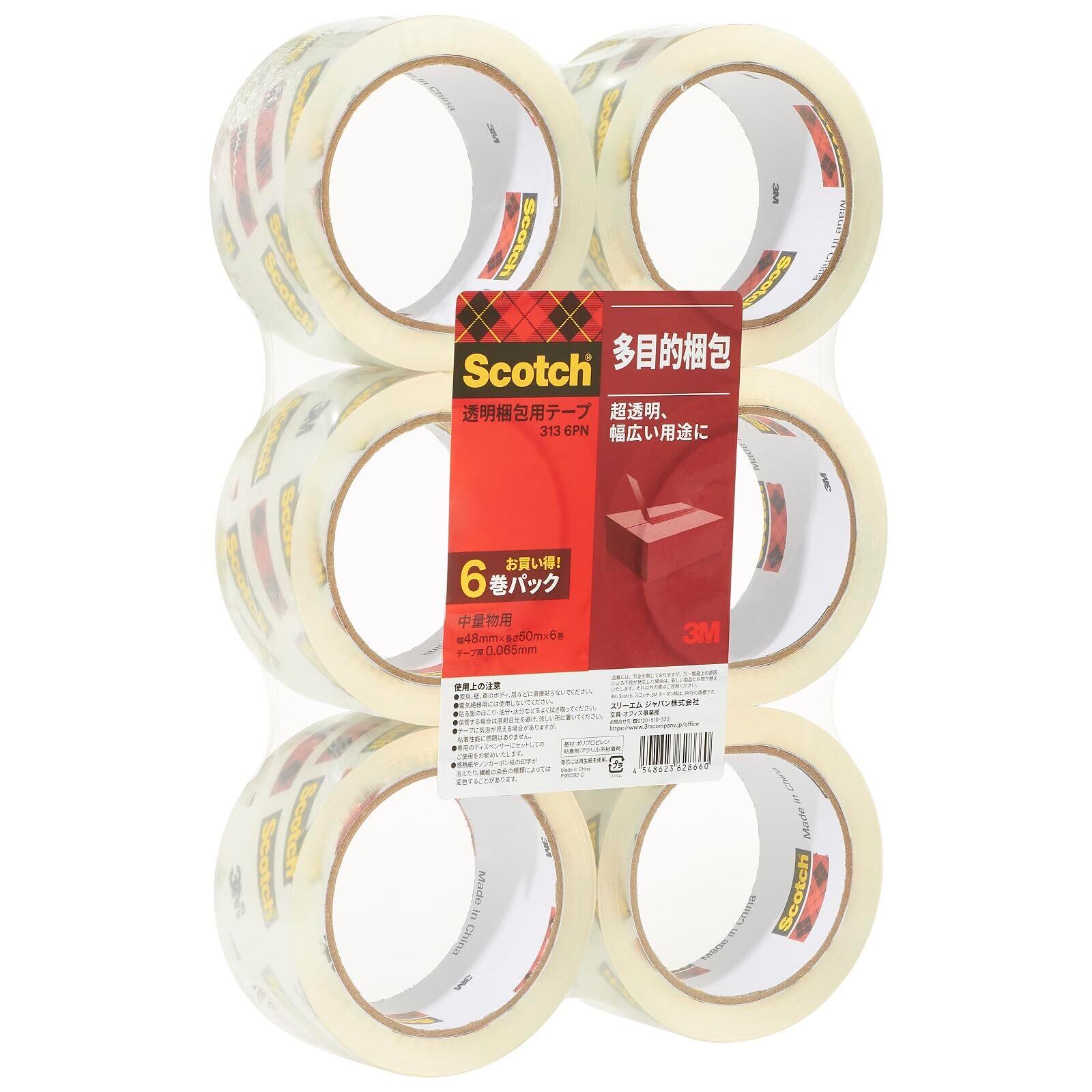 3M スコッチ ガムテープ 梱包テープ 中軽量用 48mm×50m 6巻パック 313 6PN