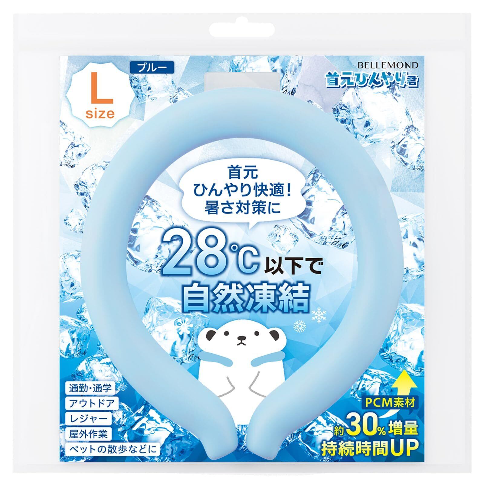 ベルモンド クールネックリング クールリング 28℃凍結 アイスネックリング ネッククーラー PCM増量 太くて長持ち 熱中症対策 首 冷やす 暑さ対策 冷却 グッズ 首掛け 冷感 | 【 首元ひんやり君 】 B1128 ブルー Lサイズ 大きめ