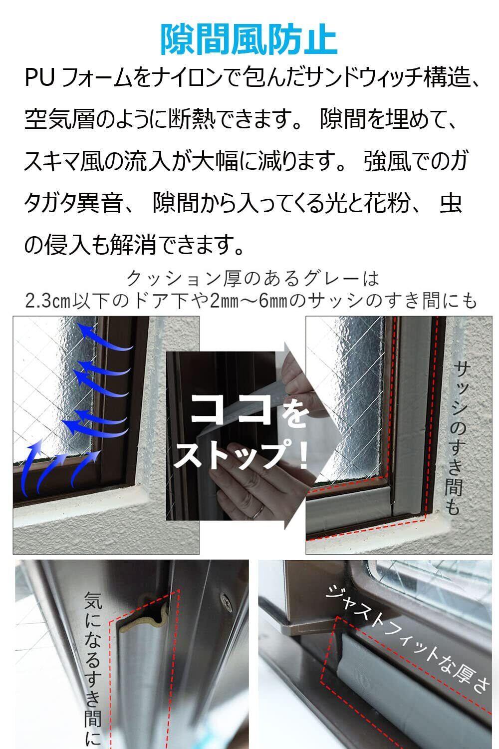 隙間テープ 長さ8m 灰色 防音クッション ドア窓すきま風防止 防寒パッキン 玄関下部間仕切り冷気遮断ストッパー 扉引き戸隙間を埋める サッシ枠断熱防虫対策